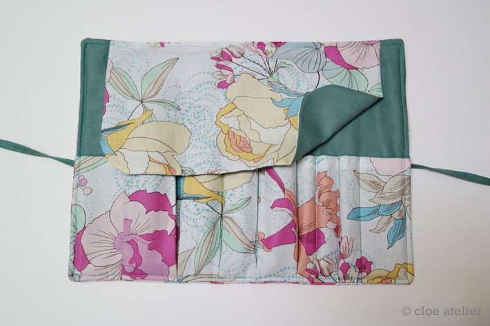 Por el revés, recuerda que hemos puesto en primer lugar la guata y por lo tanto, también hemos cosido a través de ella. Esto le dará más solidez y consistencia a los espacios para meter las brochas.