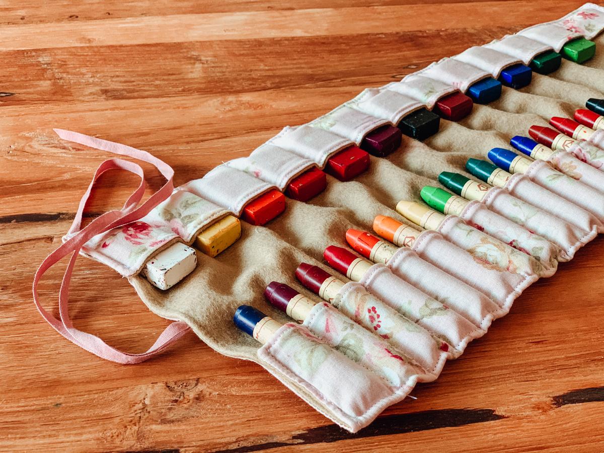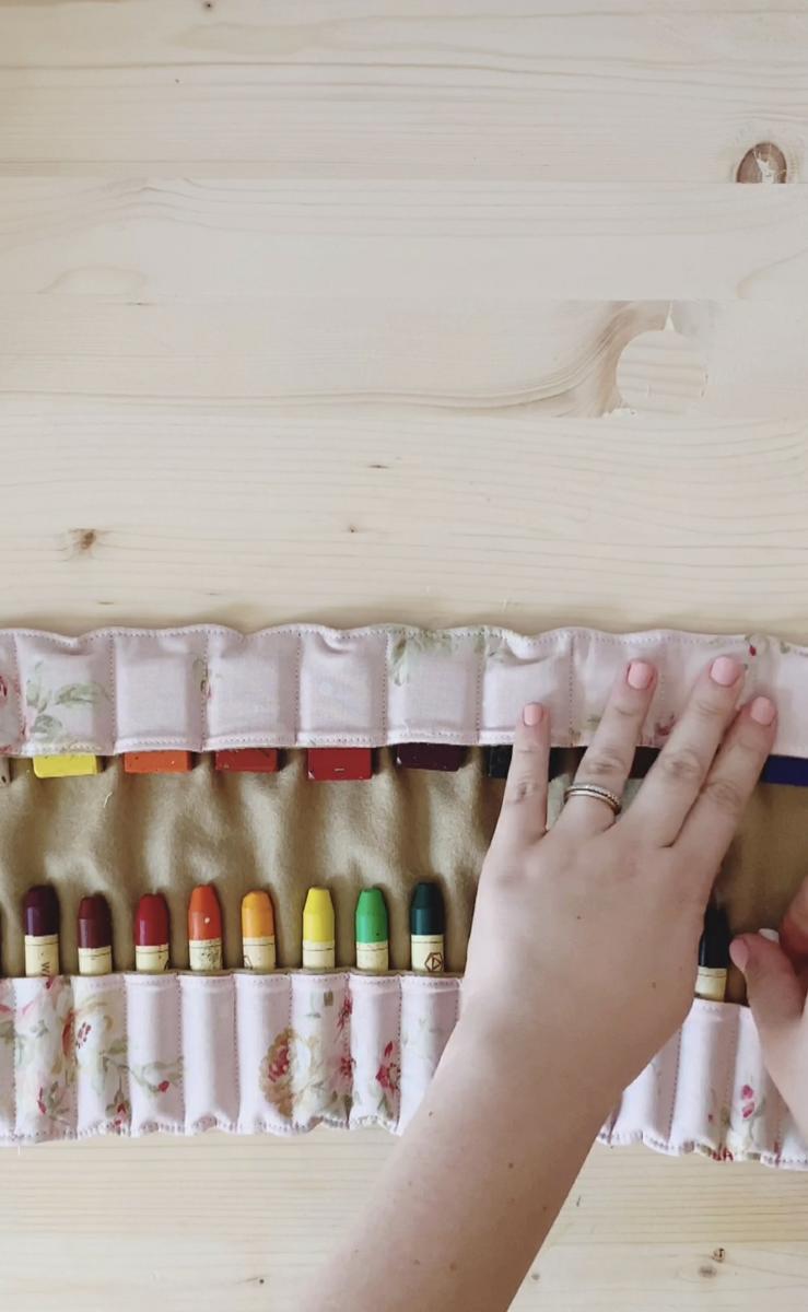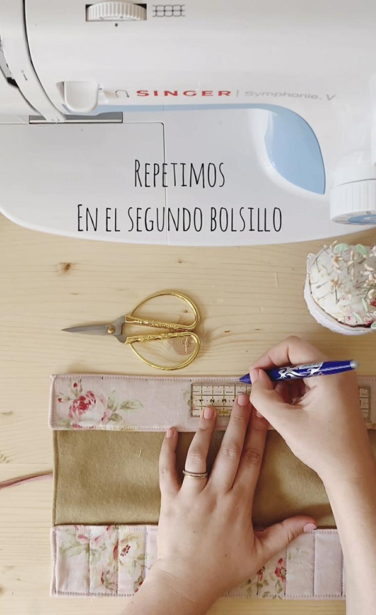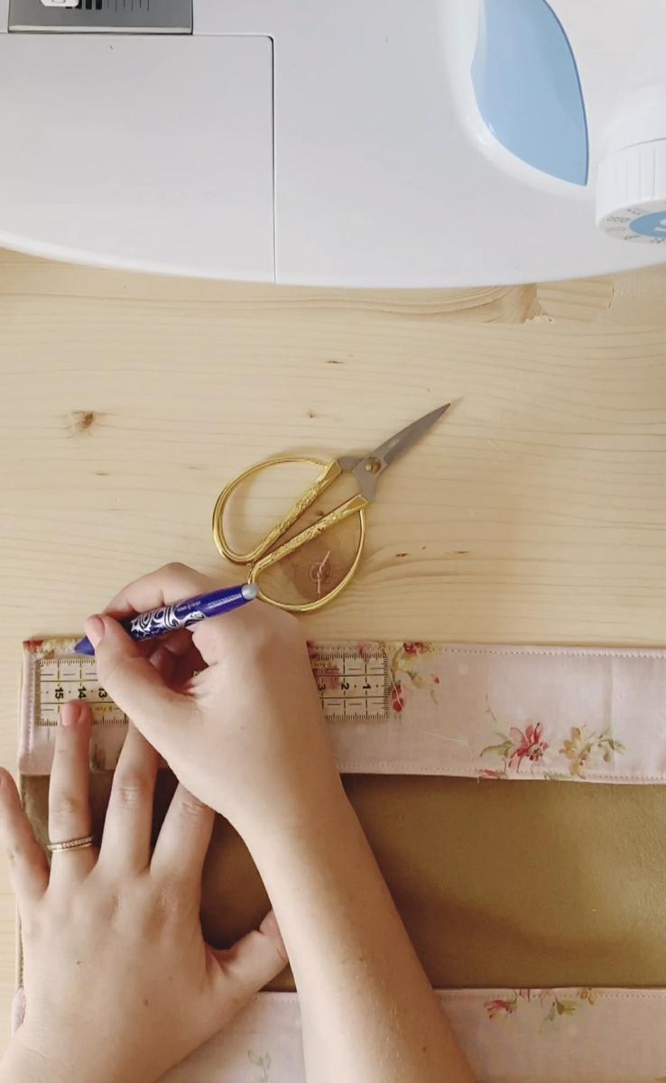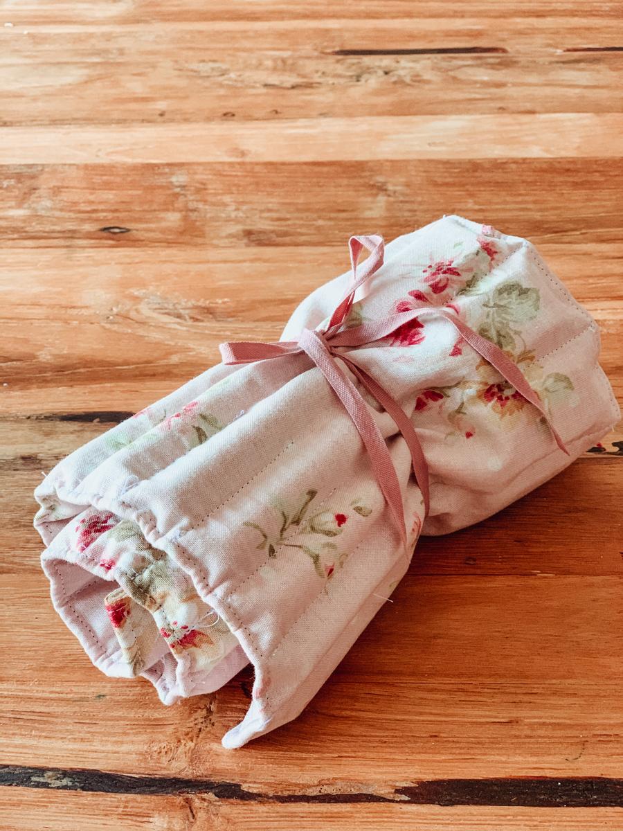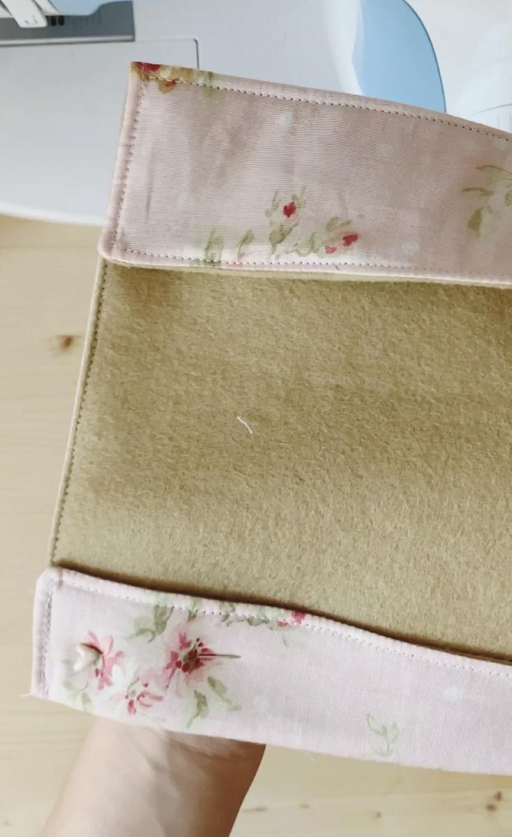 Como veréis el proceso es muy sencillo. Enfrentamos las telas que hayamos escogido y cosemos todo alrededor dejando un agujero para poder dar la vuelta. Una vez lo hemos hecho y lo tenemos del derecho, volvemos a coser para cerrar el agujero pero antes introducimos las cintas que nos servirán para poder atar nuestro estuche.