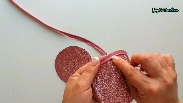 Empezamos a coser a más o menos a 1,5 cm del borde del cordón y antes de acabar metemos un trocito de cinta o bies para unir el vivo.