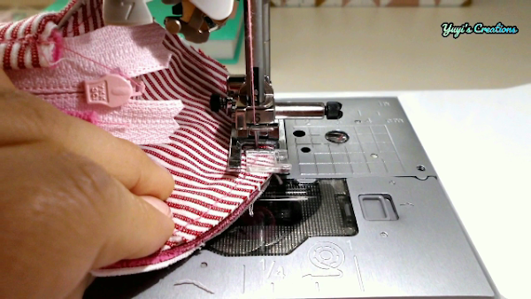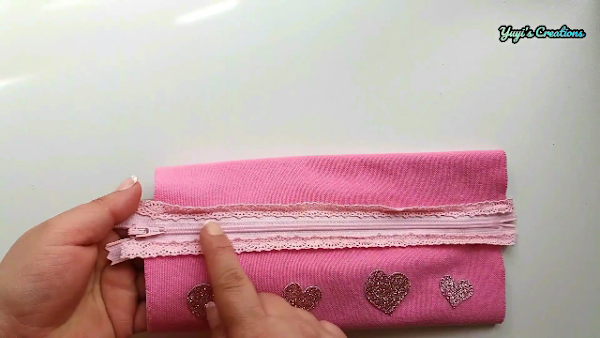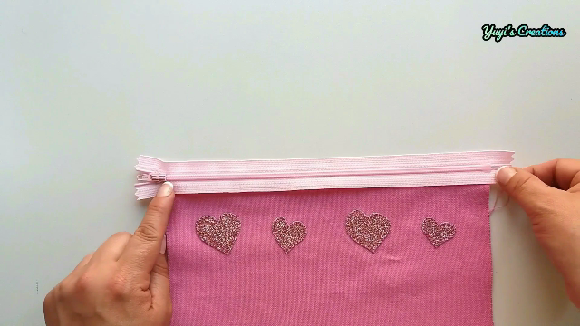 Damos la vuelta y planchamos, y ahora sí, colocamos la cremallera por encima y hacia el borde, en mi caso he usado una cremallera clásica para que veas que así también queda bonita, además la puedes decorar y te queda igual de bonita.