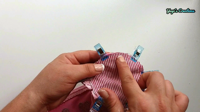 Entonces vamos posicionando las piezas redondas con el derecho hacia adentro, haciendo coincidir los piquetes que hemos hecho.
