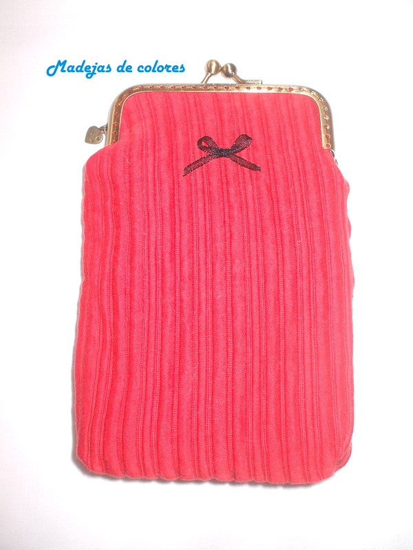 Una amiga me pidió un estuche con boquilla, para llevar en el bolso sus pinturas, como su color preferido es el rojo, así lo hice, con una tela con listas en relieve.