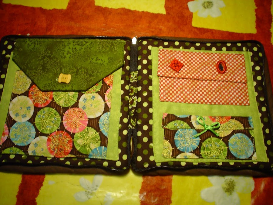 Cuando fui a la quedada de Sitges, mi AS que fué SUSANEITOR, me regalo un costurero como este y la verdad es que como va cerrado con cremallera es muy practico y no se caen las cosas, por eso cuando mi amiga ANA (Miplasti), me pidio un estuche para llevarse las cositas que utiliza para hacer su bisuteria, me parecio que este modelo le iria bien, cambie la decoracion de la parte delante y modifique un poco la distribucion de la parte de dentro adaptandola a sus necesidades.