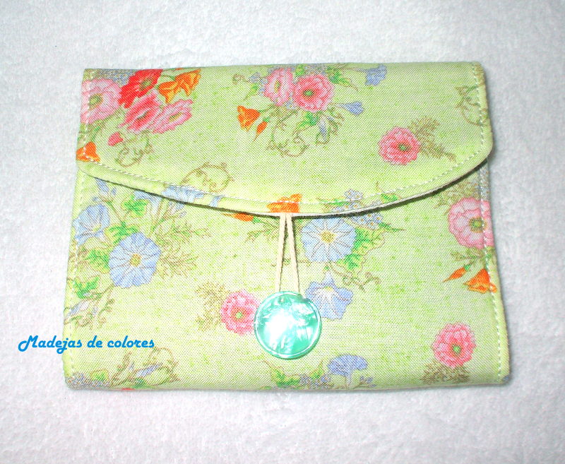 Para el primero repito con esta bonita y delicada tela con fondo verde y como cierre un botón verde agua.