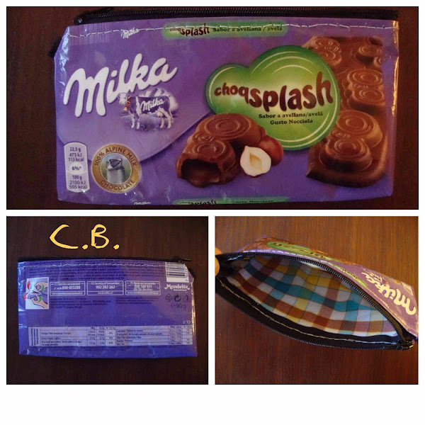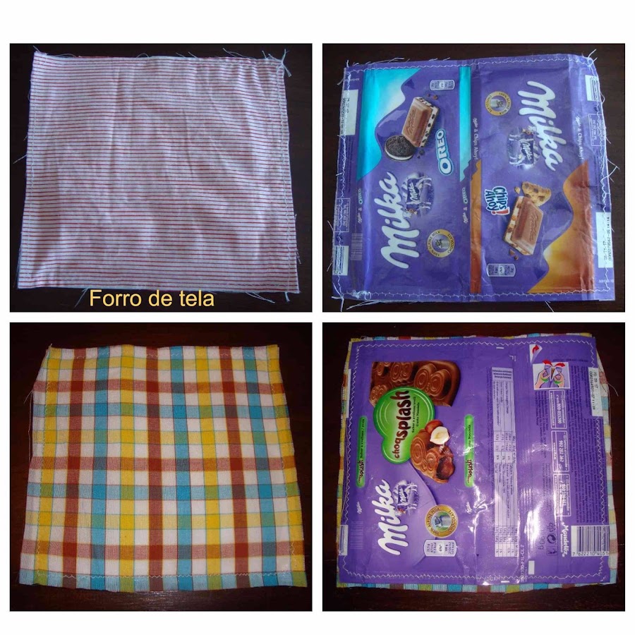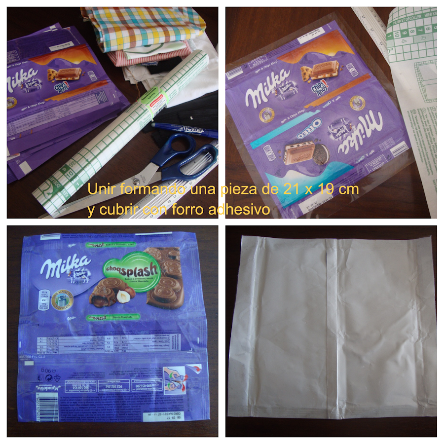 - Envoltorios de material plastificado, en este caso de tabletas de chocolate (medidas aprox 21 x 19cm). Limpios y extendidos.