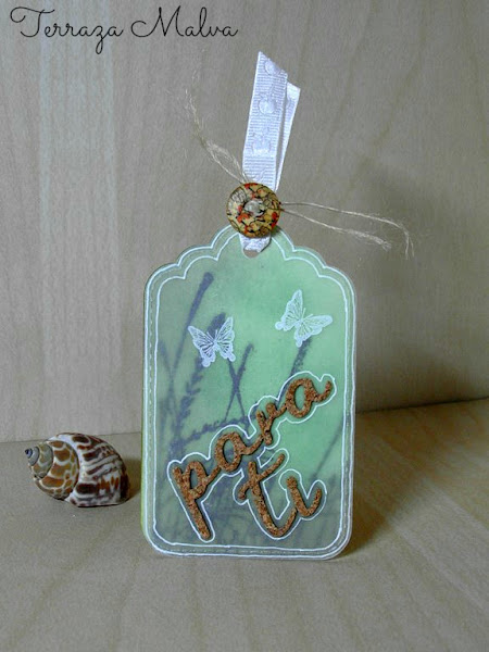 En el reto de este mes de La Pareja Creativa proponen el uso de vellum (o papel vegetal) y yo lo he utilizado como una de las dos capas de mi etiqueta. La otra capa es papel de acuarela de alto gramaje y para ambas capas he utilizado el troquel "Etiqueta Decorada" de La Pareja Creativa.