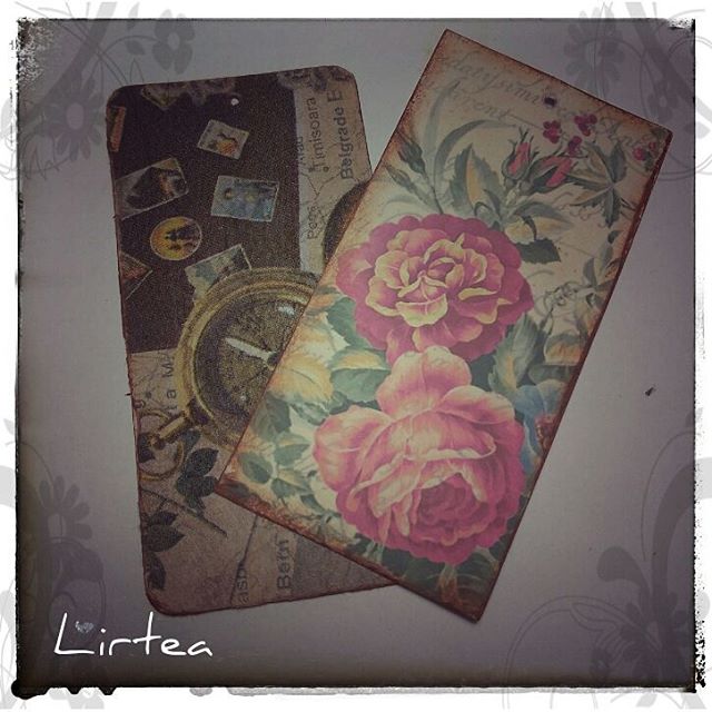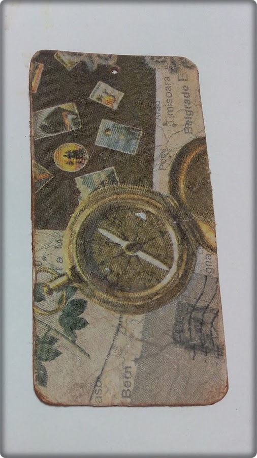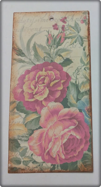 Los pasos han sido,pintar de blanco la etiqueta, poner la cola o medium decoupage,sobre la etiqueta y pegar el papel decoupage o la servilleta, poner un plástico encima o una hoja de acetato y apretar bien por toda la superficie para que se pegue y no queden burbujas de aire ni arrugas.