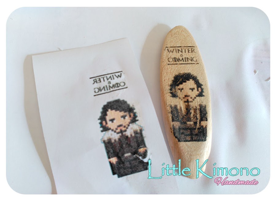 Y cómo no!? con mi querido Jon Nieve, Ygritte y Fantasma =^_^= yo los hice en maderitas pero podéis usar cajas de madera o hacer cuadros ya que es una técnica muuuy sencilla, muchas ya la conocéis es la técnica de transfer con acetona ;)