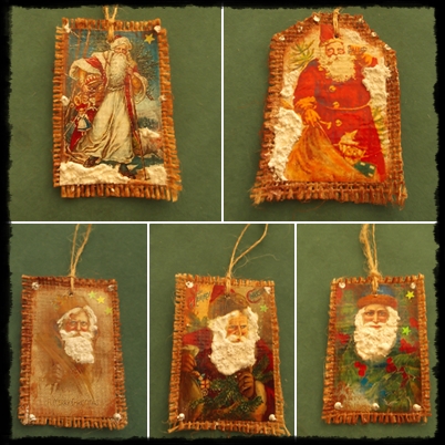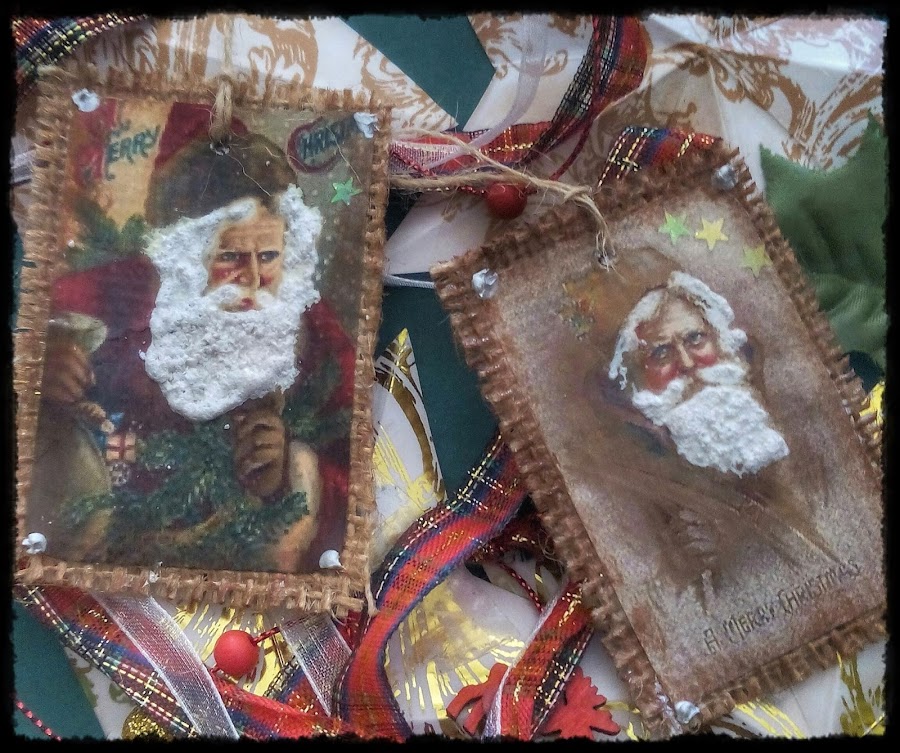 Están hechos con tela de arpillería o tela de saco y unas imágenes sacadas de la red.
