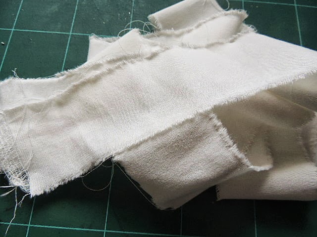 Medimos bien la anchura de las tiras, y cortamos ( esta vez si a tijera), tiras dos mm mas estrechas de entretela.