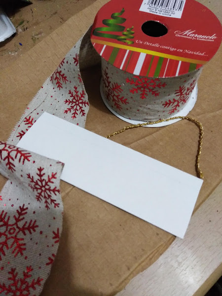 Materiales: Lo que te haya quedado de tus adornos que hiciste, en mi caso, cintas con motivo navideño y cartón e hilos para decorar, etc.....