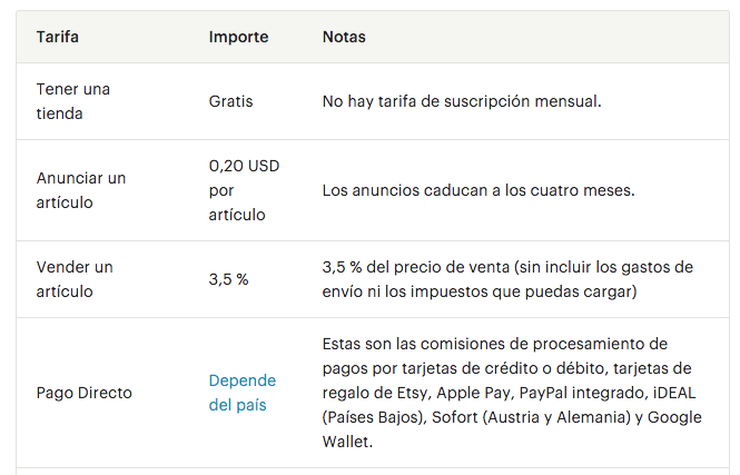En cuanto Etsy tiene las siguientes políticas: