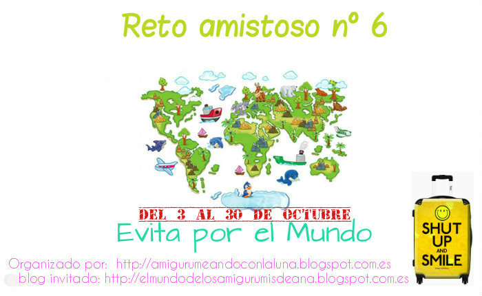Todo esto gracias a Luna del blog Amigurumeando con la Luna que ha elegido el patrón de Mi Pequeña Evita para el Reto nº 6 del grupo Retos Amigurumis.