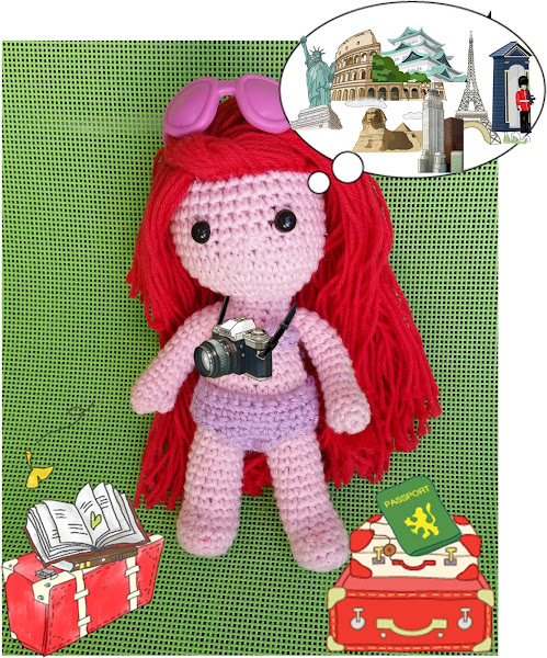 Espero ver muchas Evitas en muchos lugares y recibir muchas postales de los países, ciudades, pueblos, monumentos etc... que visite. Si queréis ver el patrón lo encontrareis aquí.