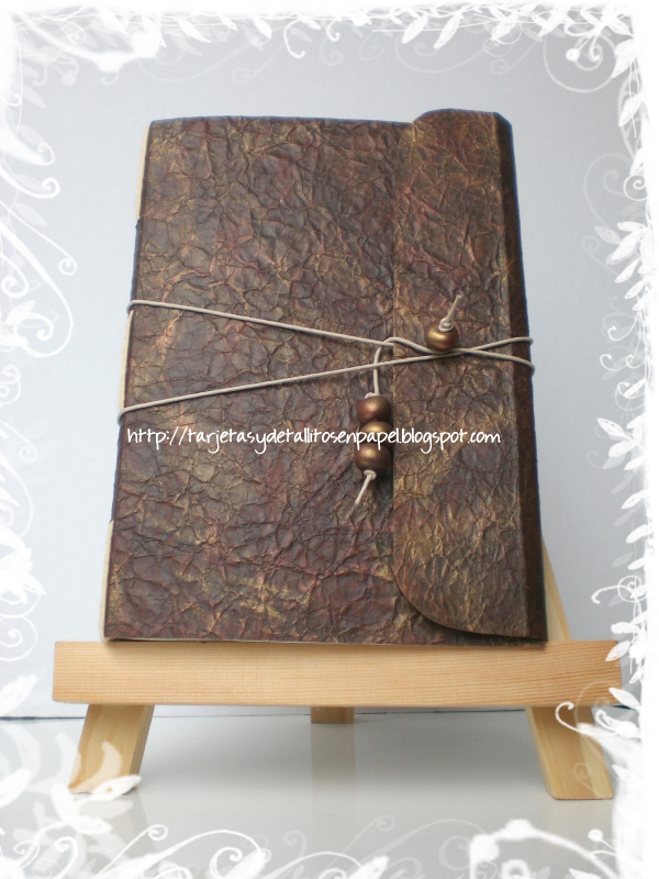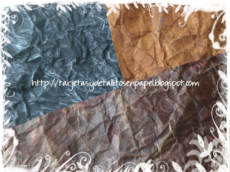 Pues sí, no es más que imitaciones de cuero!...evidentemente en papel! Hay muchos tutoriales y maneras de hacerlo, pero he probado con diversas pinturas y tintas, comprobando la opacidad o brillantez de la superficie. Y he llegado a mis propias conclusiones y he empleado cosas que antes ni me hubiera imaginado!