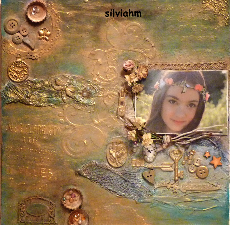 Así que el otro día me puse a experimentar.Saqué el gesso, mis acrílicos, las tintas y rebusqué en mis cajas de botones, cintas y demás cachivaches, hasta le cogí a mi hijo chapas de botellas.Además utilicé palitos del jardín, botones, cremalleras, charms de metal, gasas, cinta de carrocero...