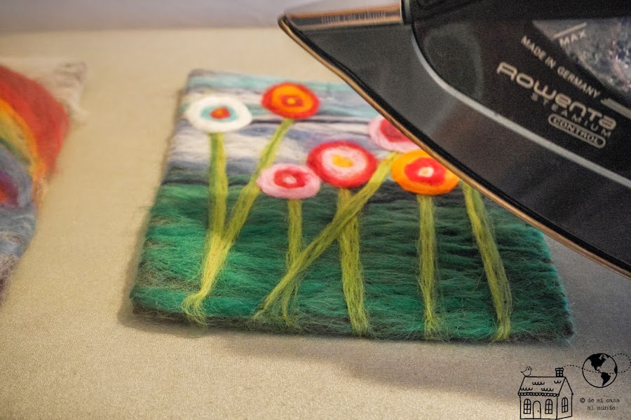 El último paso consiste en darle un buen planchado con vapor al tapiz y así se queda todo bien fijado.