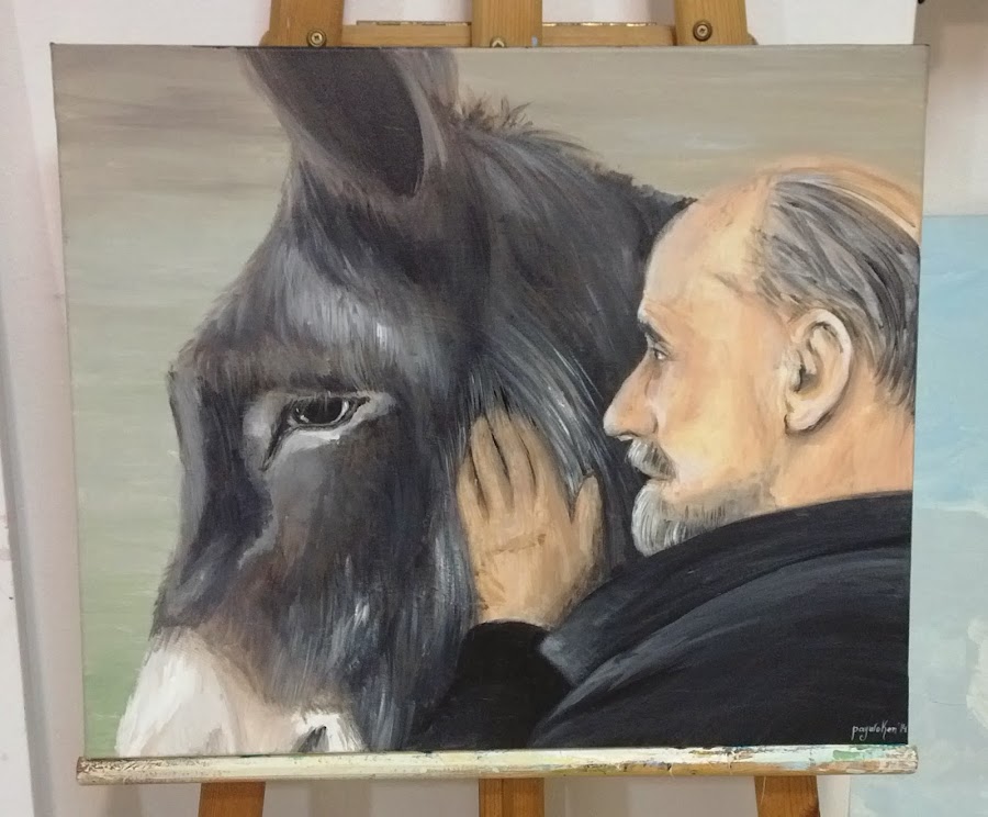 Además, con motivo del Año Platero, he realizado también esta obra titulada "Susurro", que está expuesta también en el Teatro y en venta.