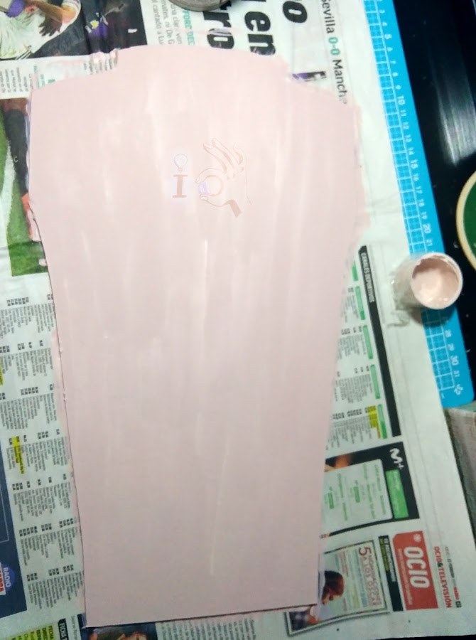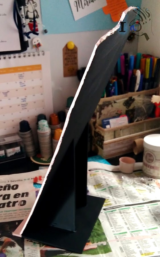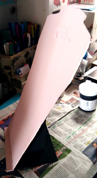 Luego lo acabo de pintar. La parte de la base que sobresale por delante con el mismo rosita que la parte delantera, y toda la parte trasera en negro.