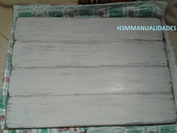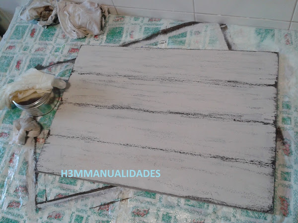 Inicialmente pensé en utilizar un palet, pero no encontré en aquel momento uno que tuviera bien la madera, así que compré un tablero de DM y lo trabajé intentando imitar los tablones. Con un destornillador lo primero que hice fueron unas rayas que marcaran la separación entre tablas.