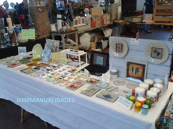 Y quería mostrar esa posibilidad en el puesto de venta, ya que los platos, si se ven sin más sobre la mesa, igual no hacen pensar en la posibilidad de ser colgados... para ello necesitaba algún expositor...