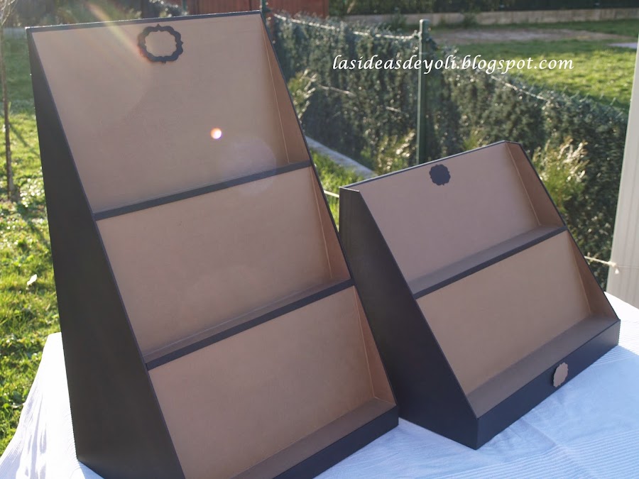 Hace unos días me encargaron hacer unos expositores, para una encuadernadora y por supuesto como ya sabéis que me gustan los retos !manos a la obra! y aquí esta el resultado de momento os enseño estos dos que son de gran tamaño.