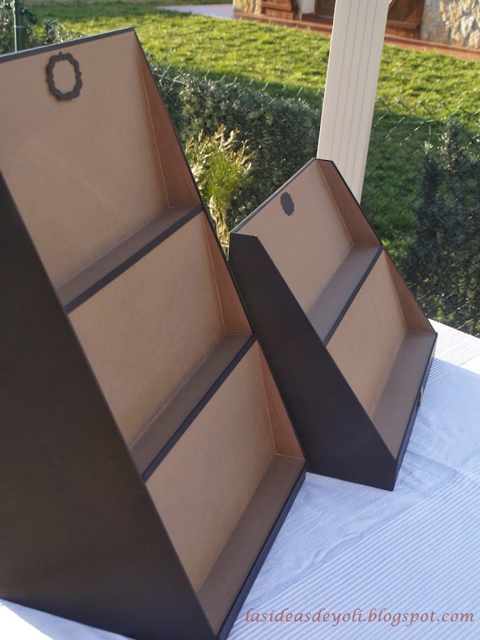 Son de tres alturas y de dos, en este último le he puesto detrás una pequeña tapa o cajón para tener un stock de agendas .