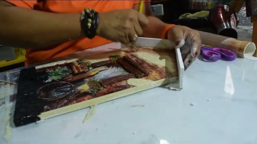 - Ya cuando este la parte de alto relieve, dejaremos secar muy bien, para iniciar a pintar, de acuedo a los colores que trae nuestra lamina o cromo.