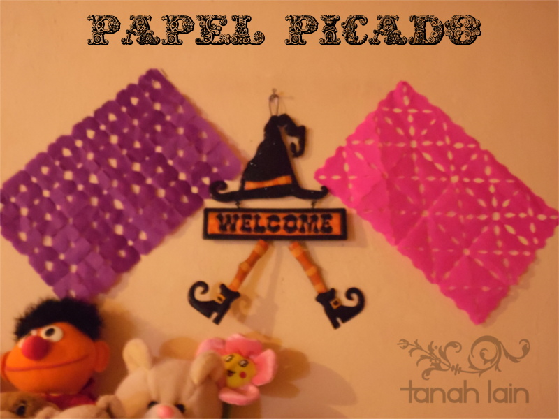 El papel picado tiene tantas variantes como tu imaginación lo permita. Básicamente consiste en doblar el papel en mitades, terceras partes o triángulos y hacer pequeños cortes que al desdoblar forman bonitas figuras. Es muy común verlo en México decorando las ofrendas a los muertos el dos de noviembre o en días de fiesta.