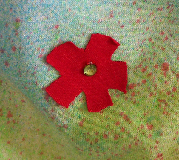 Las flores las he hecho con un trozo de tela de camiseta, puntada en medio y brillo adhesivo en el centro.