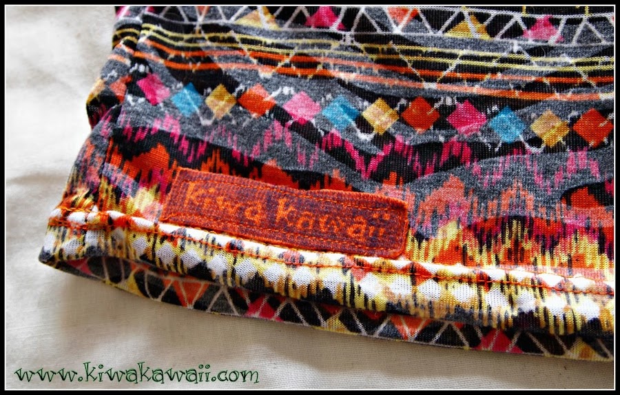 En el bajo un dobladillo con aguja doble y walking foot, y con mi sello en un retalín de camiseta.