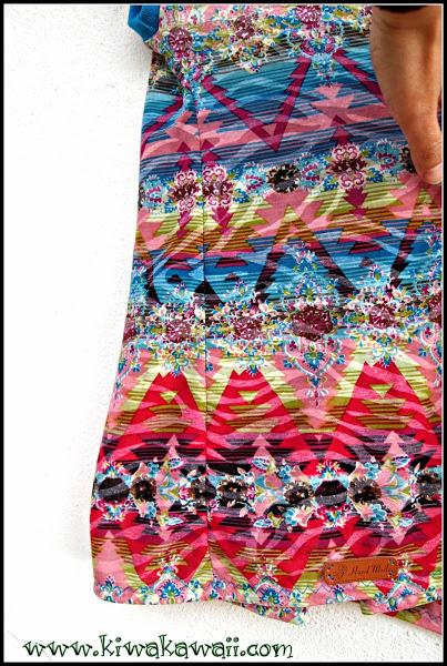 Telas de Cal Joan, la principal de estampado geométrico chulísimo y los canesús, cuello y sisas en azul.La única modificación es que alargué el bajo (ella es muuuuy alta!), y la estreché un poco.