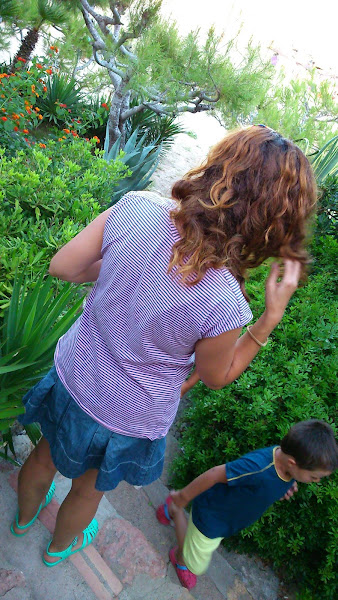 No se si os he dicho que estaba un poco arta de combinaciones, contrastes, etc... pues esta me la hice basándome en esa filosofía, misma tela, cambiando el sentido de las rayas para causar furor y ya, jajaja