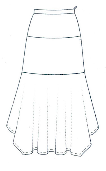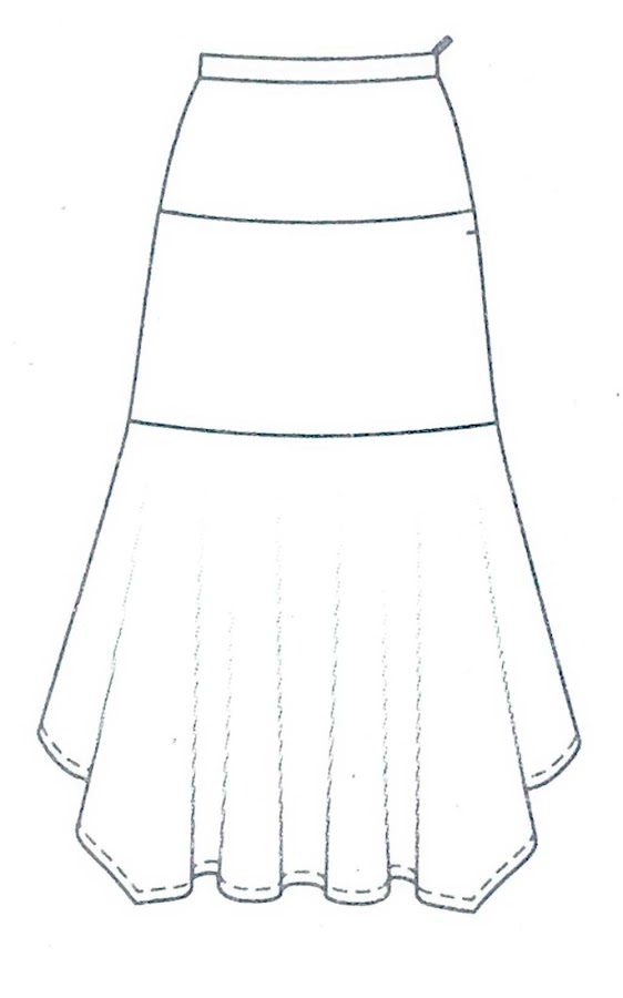 Se trata de una falda que recuerda las faldas canasteras, más sencilla claro, pero con esa parte ajustada que llega hasta encima de la rodilla.