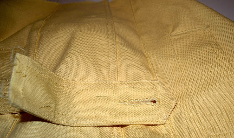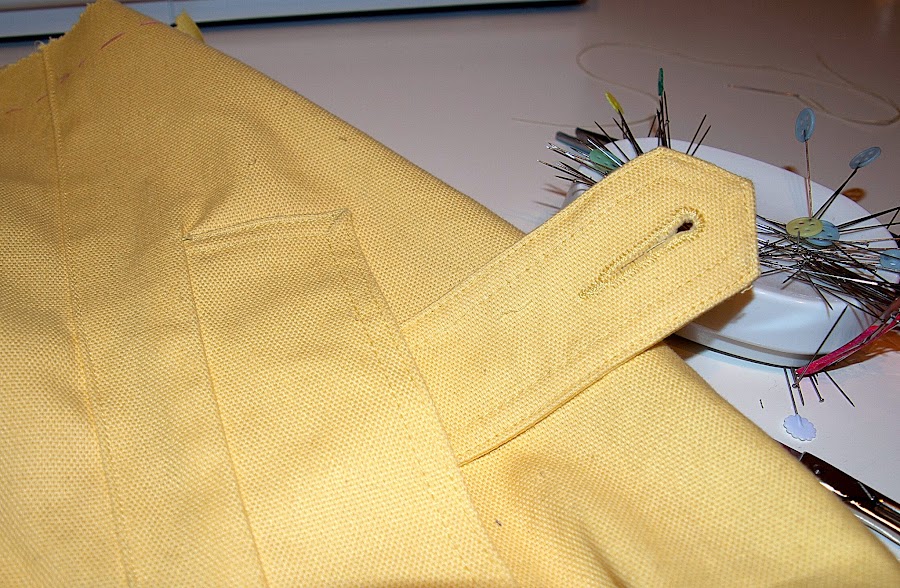 en la parte delantera quedaban los bolsillos de la chaqueta y como no los iba a poder utilizar se me ocurrió que podía utilizar las trabillas de las mangas y ponerlas como decoración de la siguiente manera y luego decorarlos con un botón