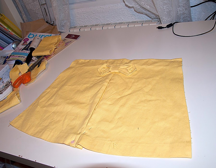 Y como es habitual mi cabecita empezó a funcionar al momento, mmmmm de donde saco yo una falda amarilla? busque tela por Internet, pero no encontré nada que me gustara y de repente la vi...años colgada en mi armario y sin ponérmela nunca!!