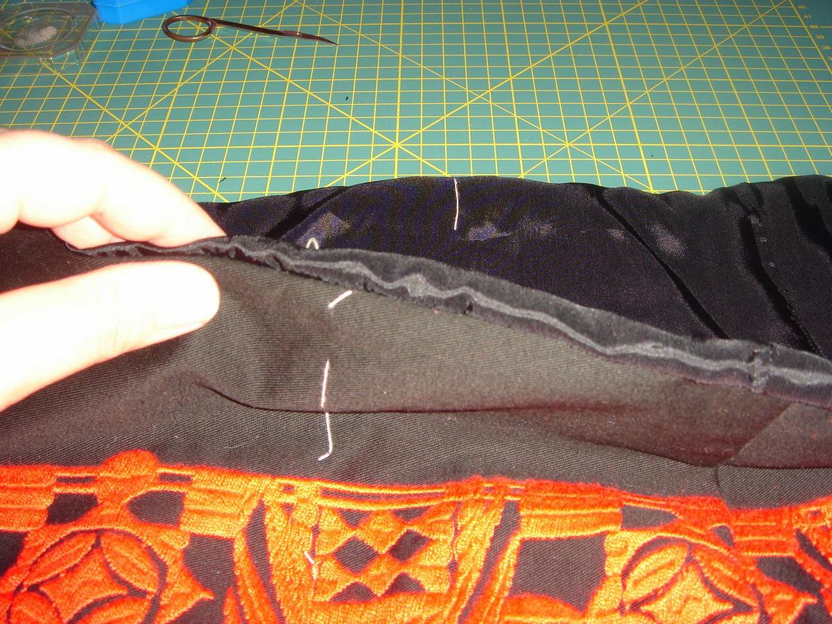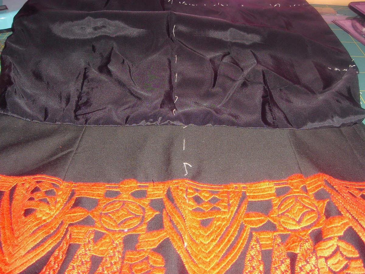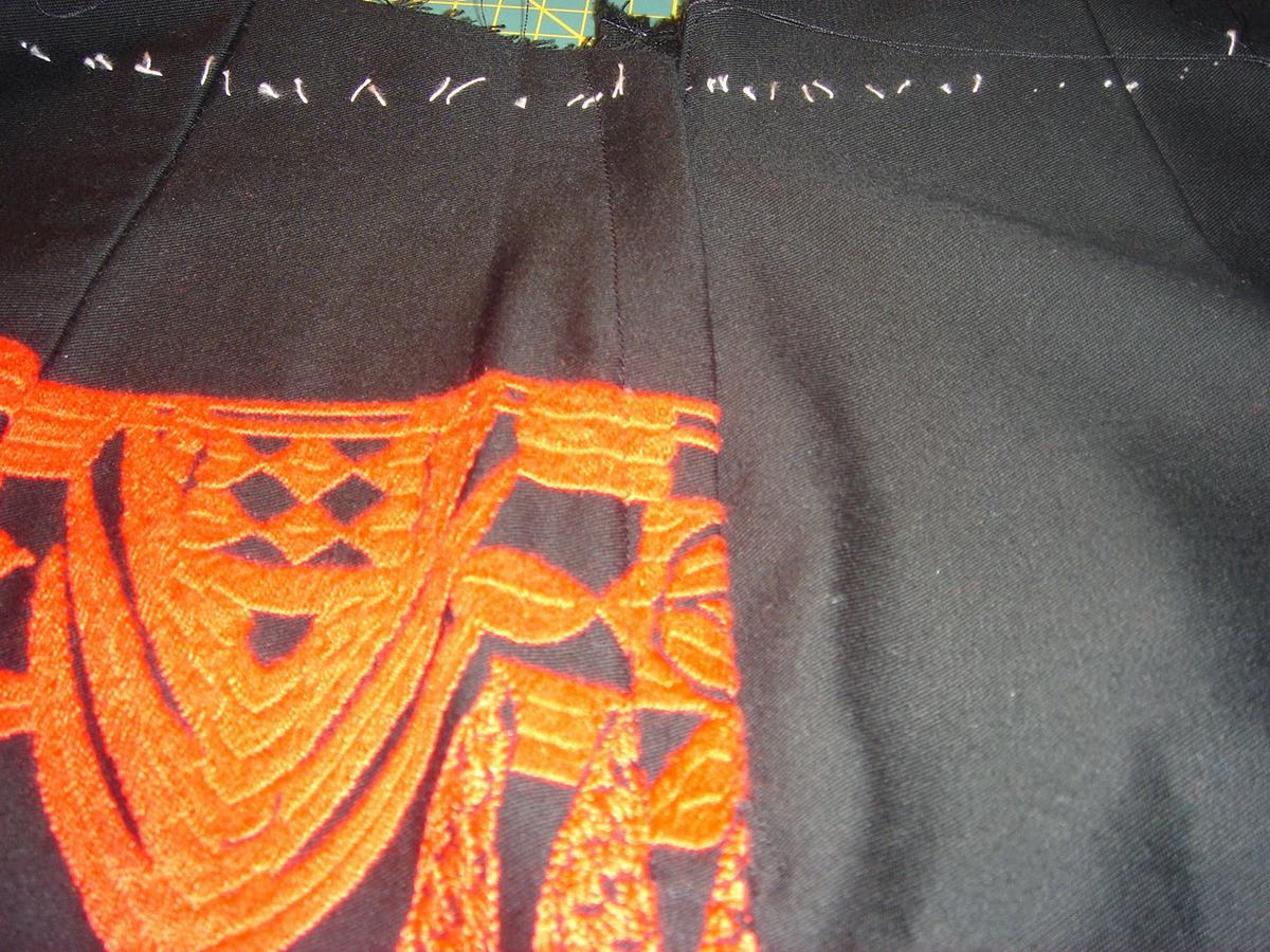 Vigilar el bajo del bordado para que coincida con el bajo de la falda.
