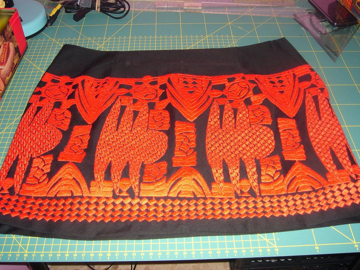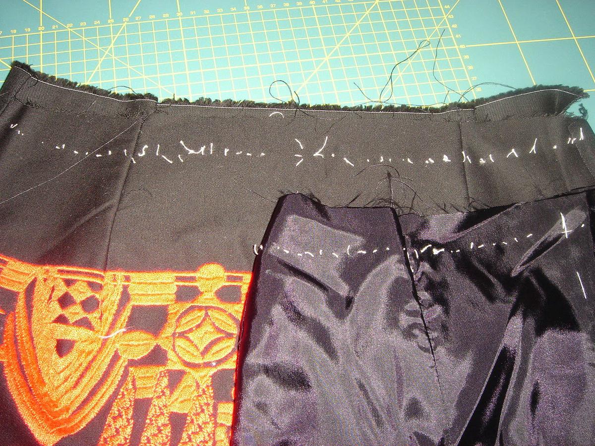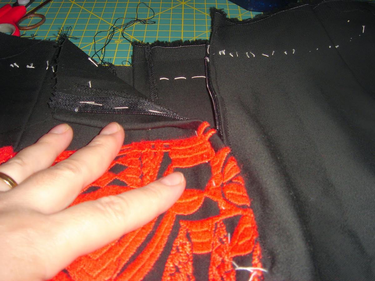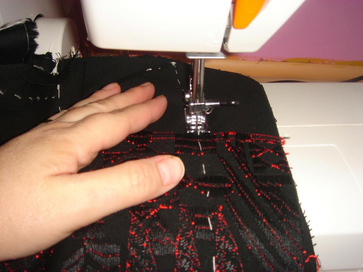Vigilar el bajo del bordado para que coincida con el bajo de la falda.