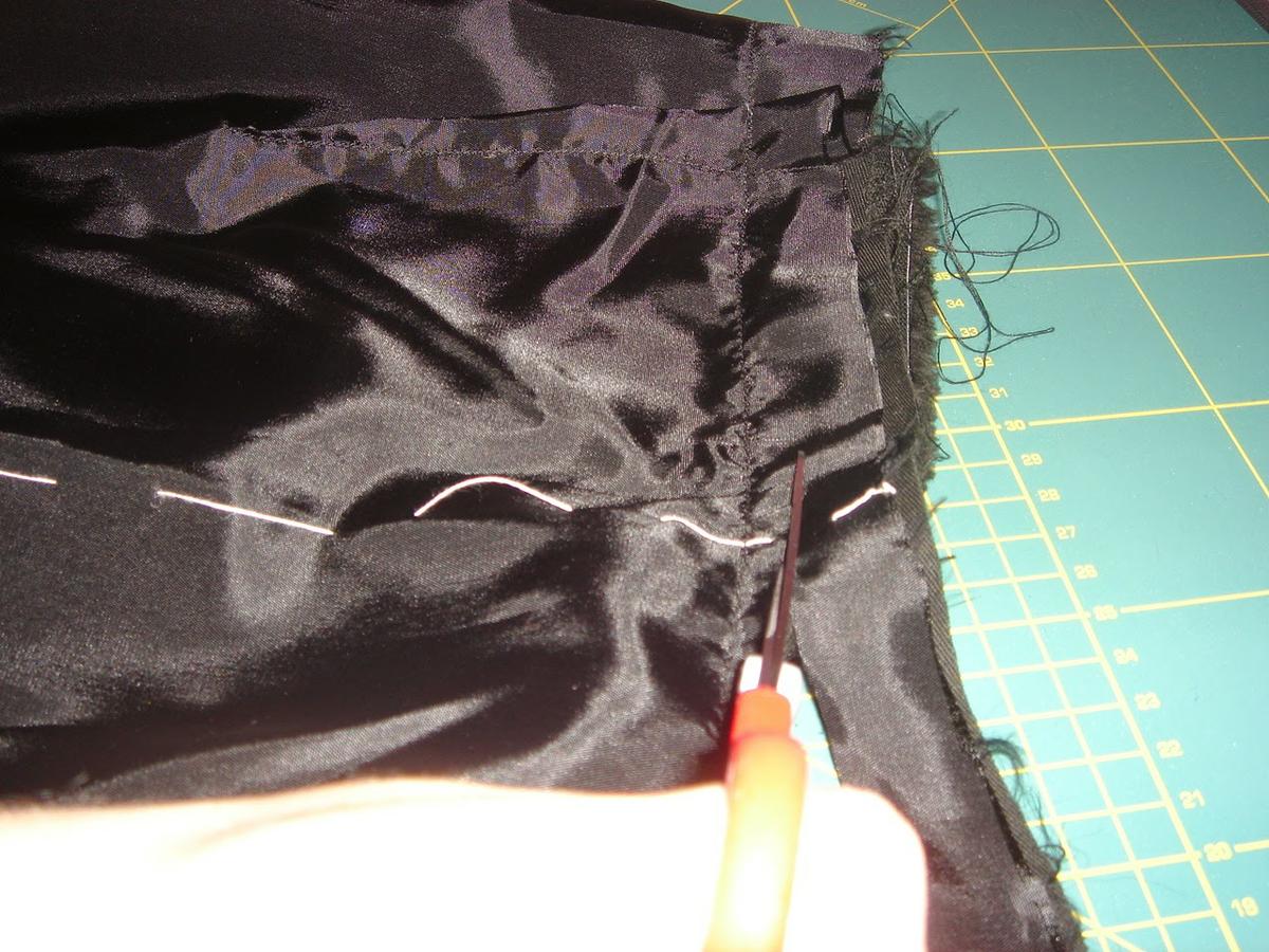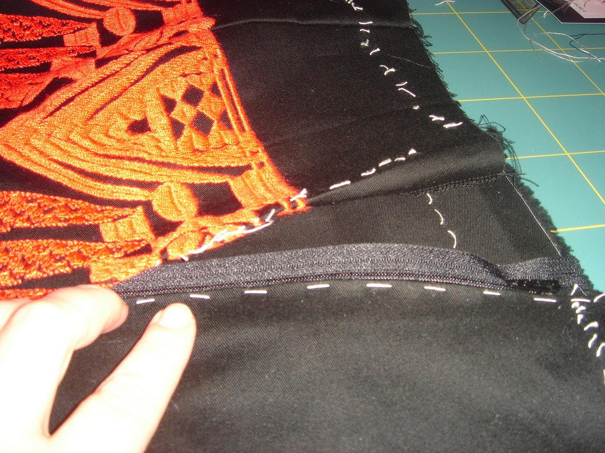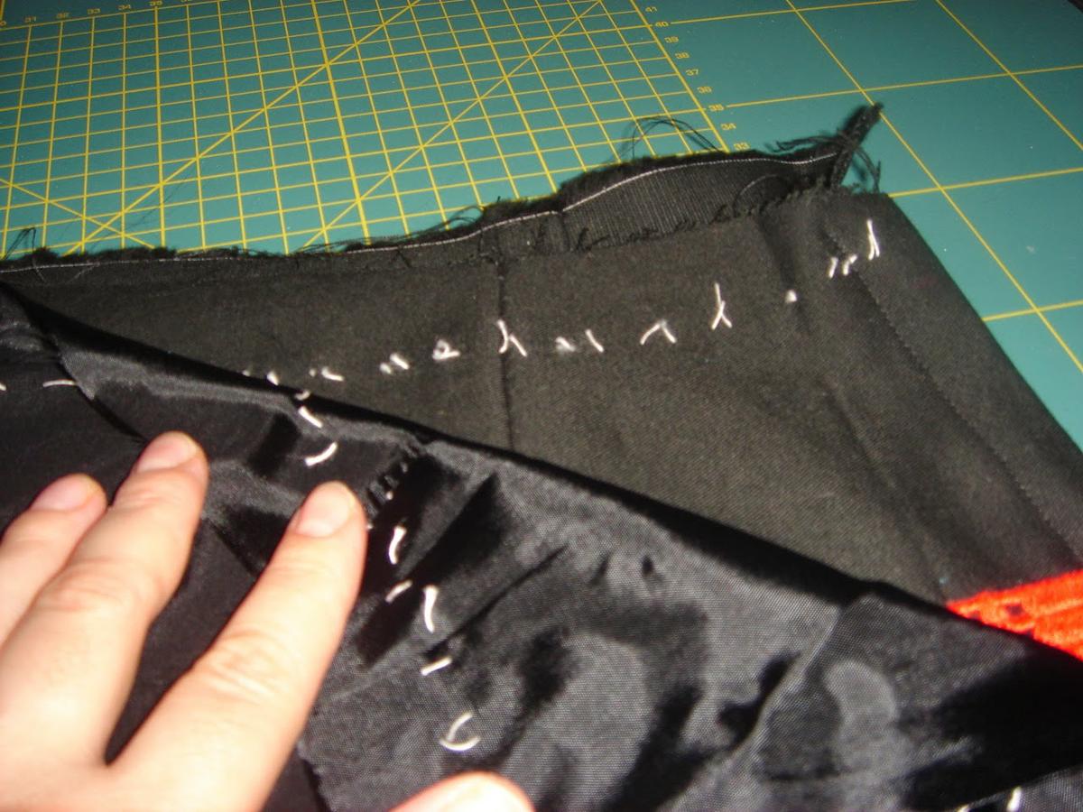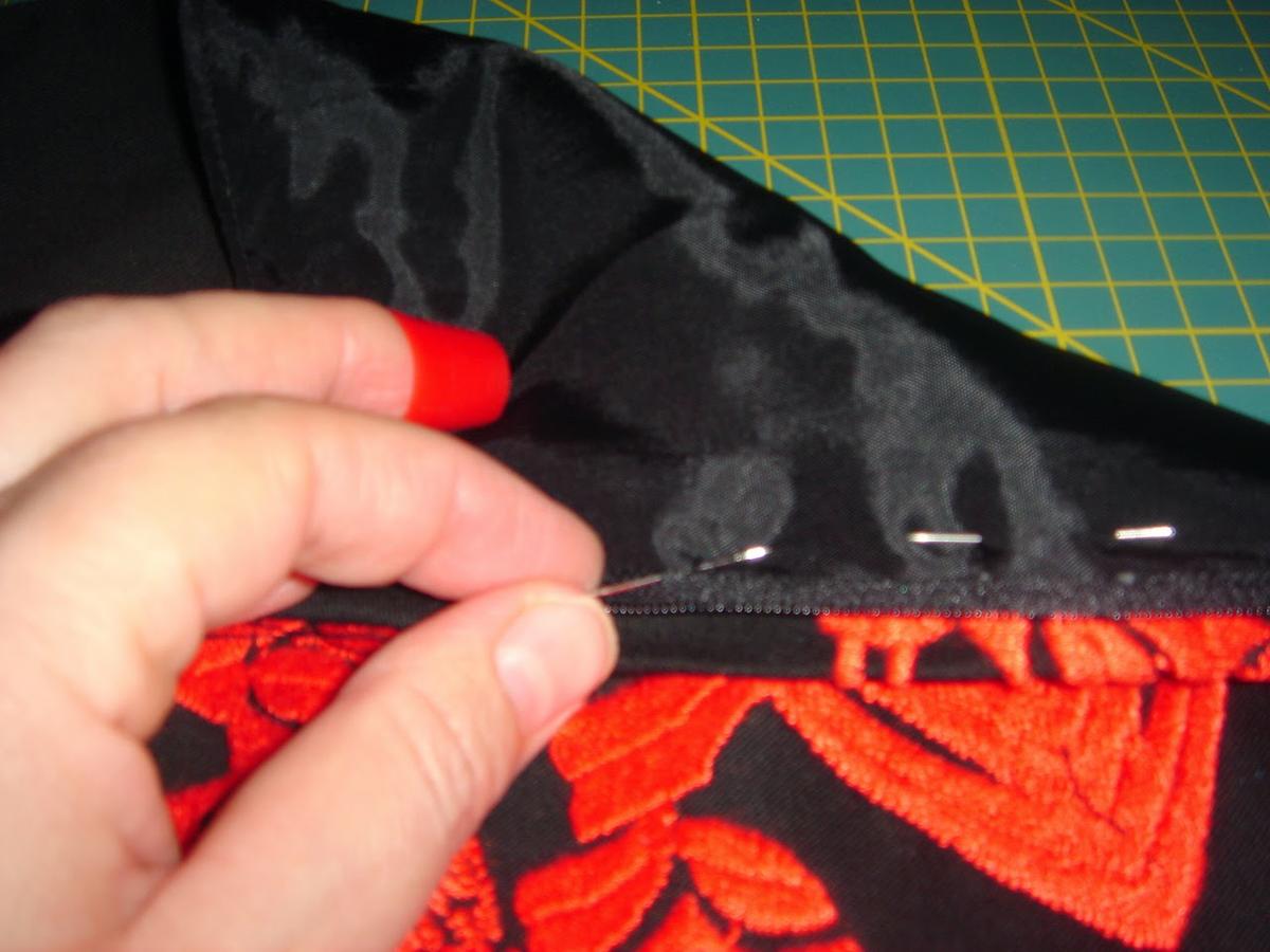 Para fijar el forro en la obertura de la cremallera de la falda pasamos unas puntadas a mano.