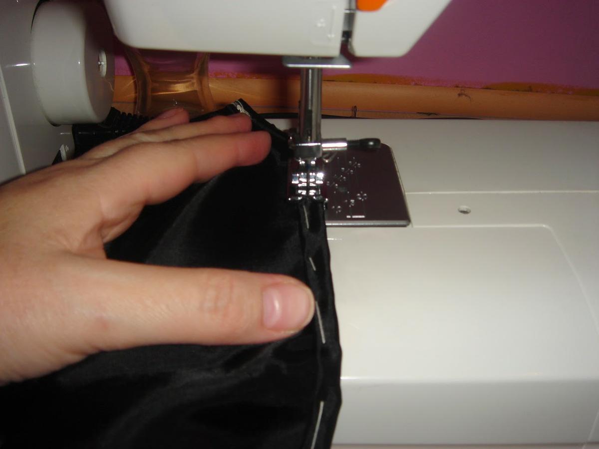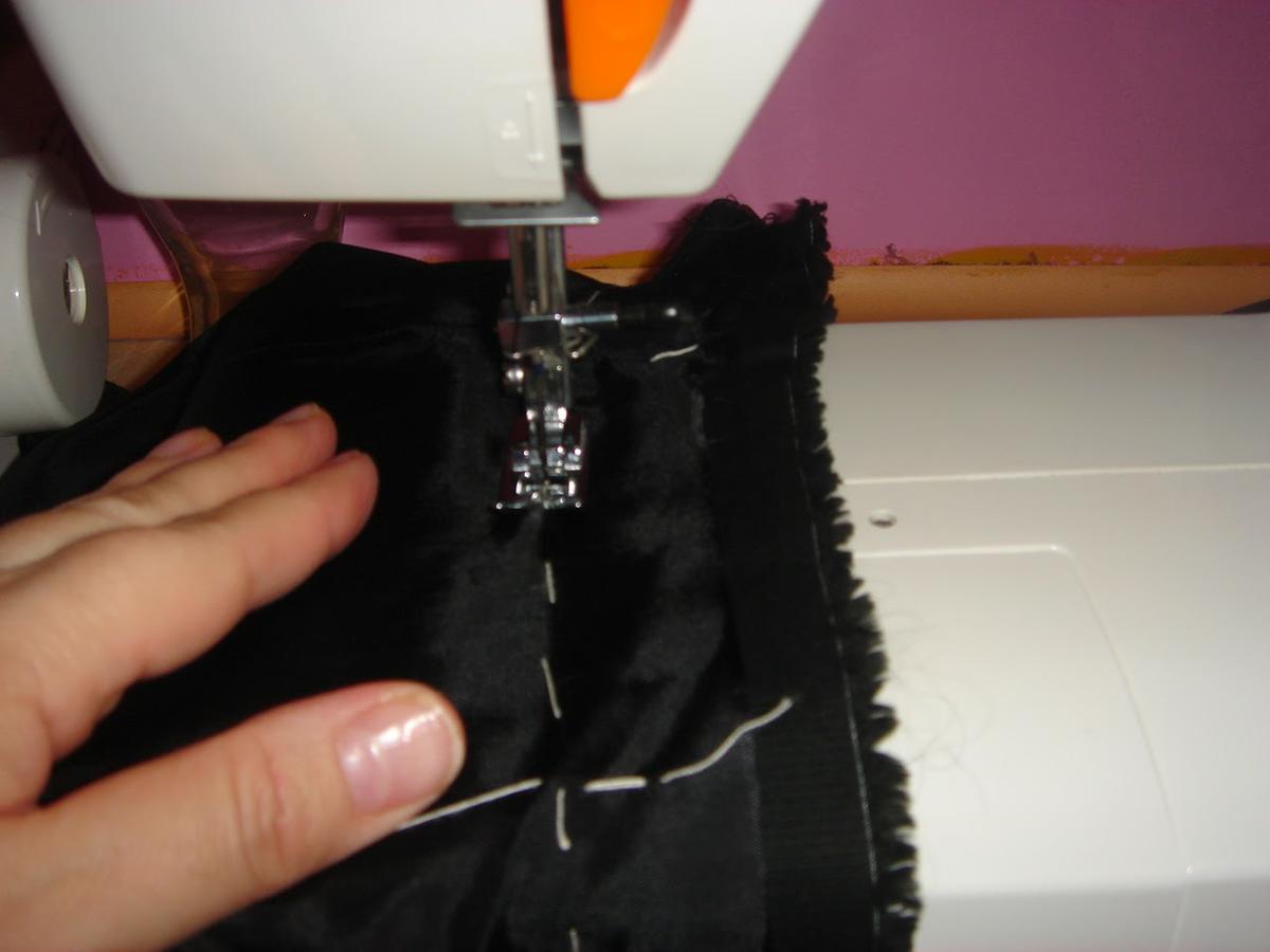 Colocamos bien el foor en el canto superior y pasamos un pespunte al filo de la falda.
