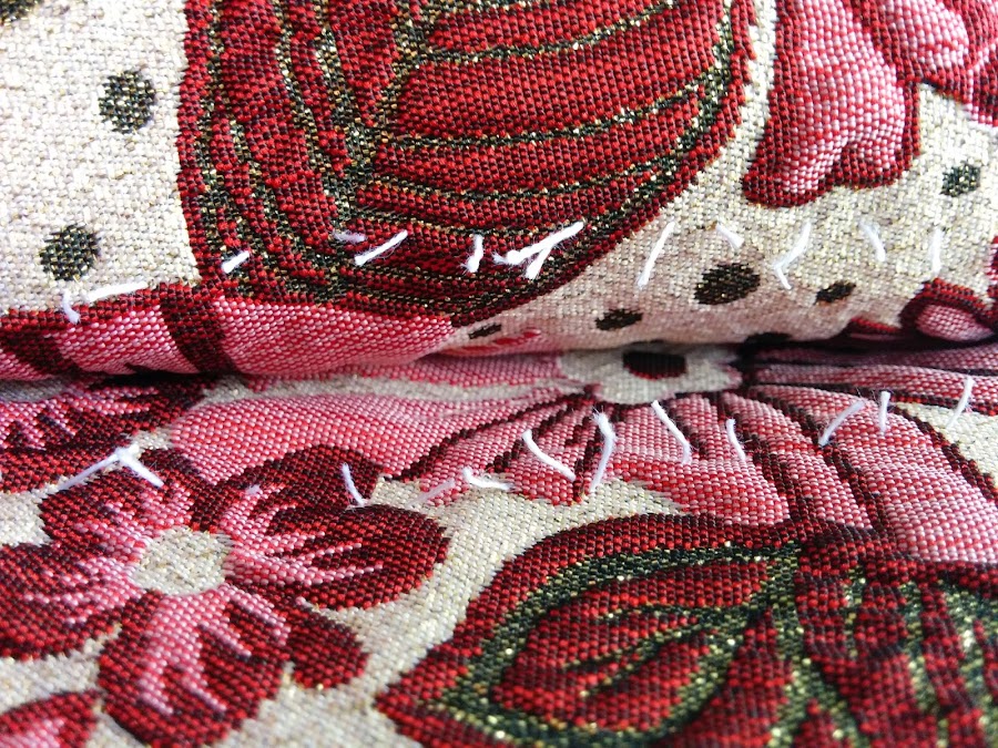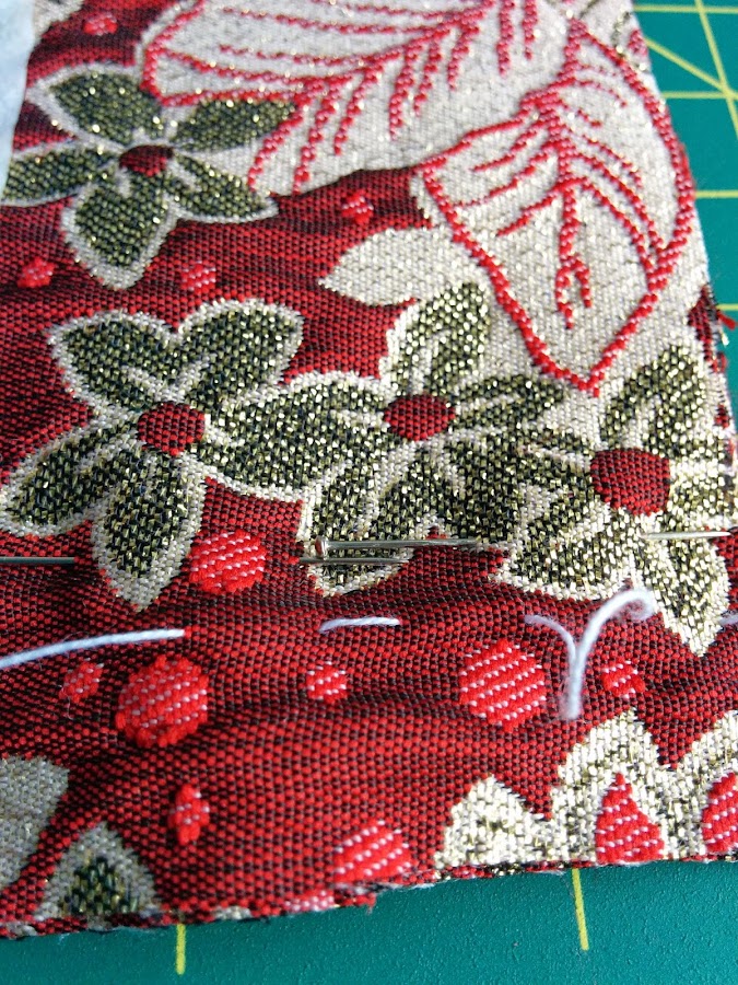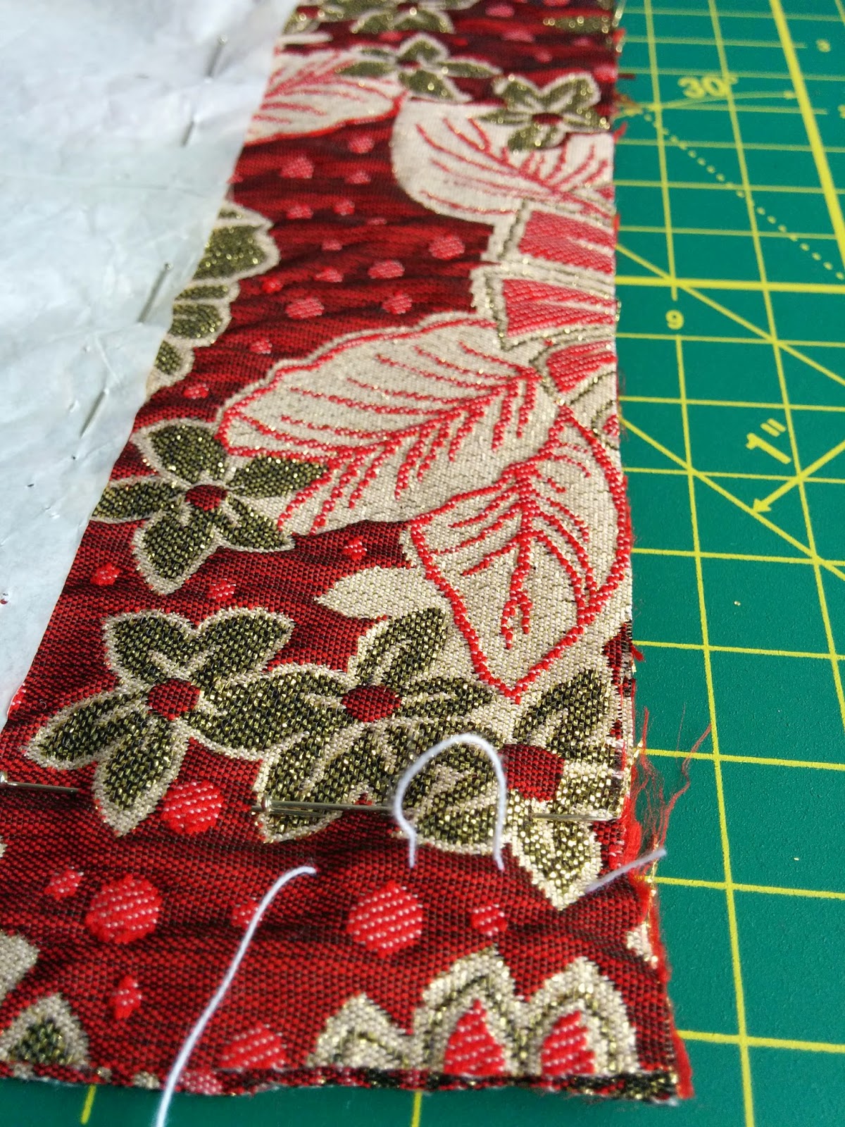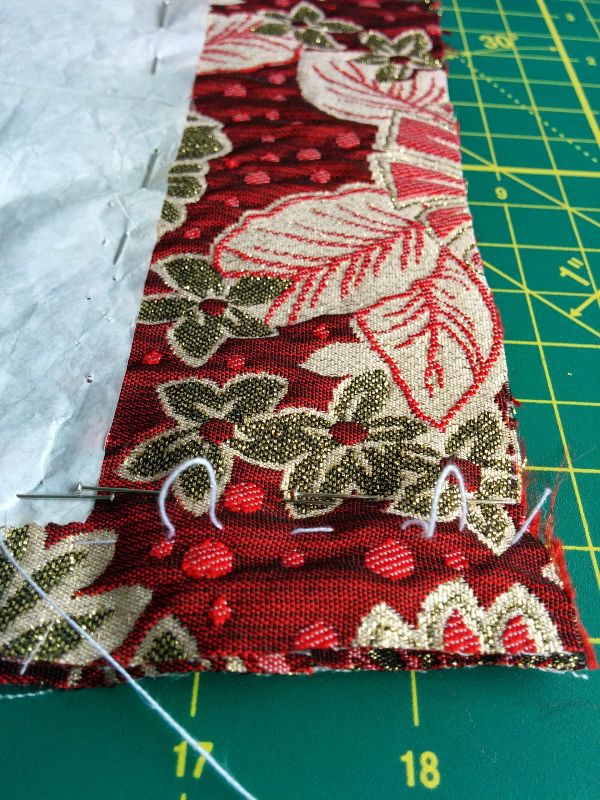 Una vez cortada nos disponemos a pasar hilos, yo lo hago de esta forma, hay muchas formas y yo os propongo esta, a mi no me gusta marcar las telas con tiza en la medida de lo posible (es una manía), prefiero pasar hilos flojos, de esta forma no "manchas" la tela y todo queda marcado a la perfección. Os dejo foto de como paso los hilos.