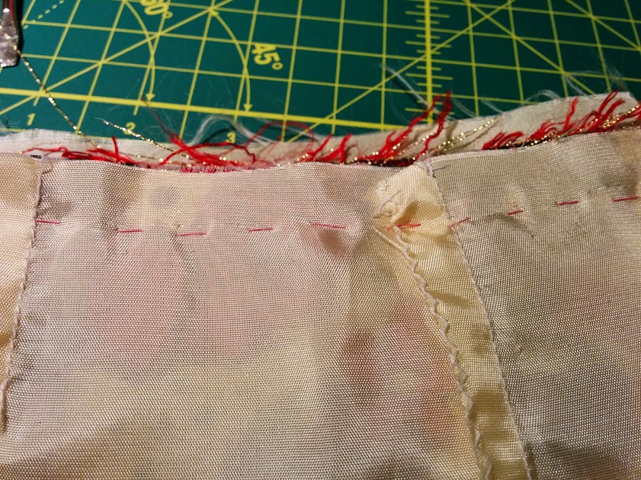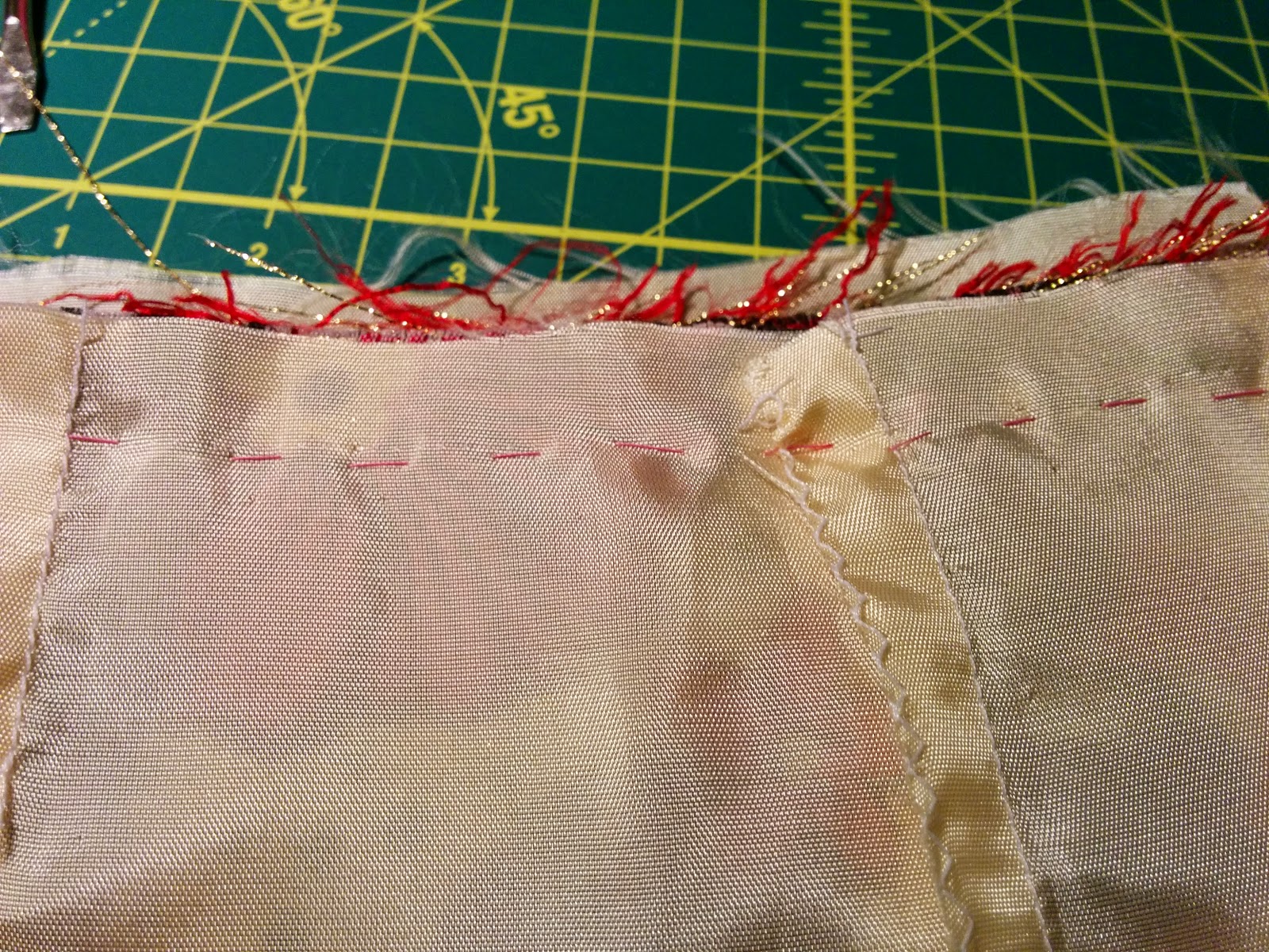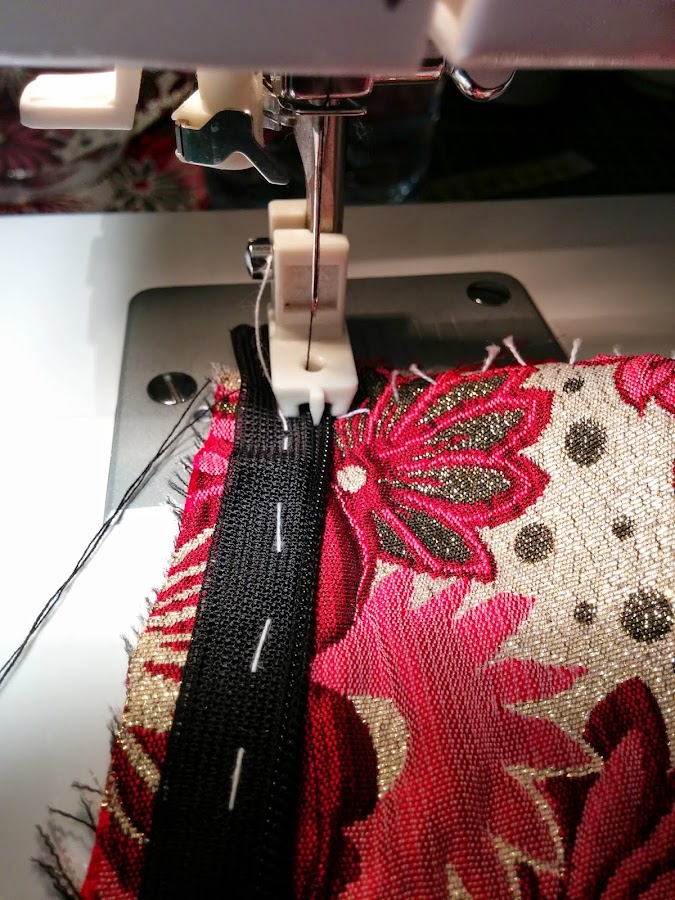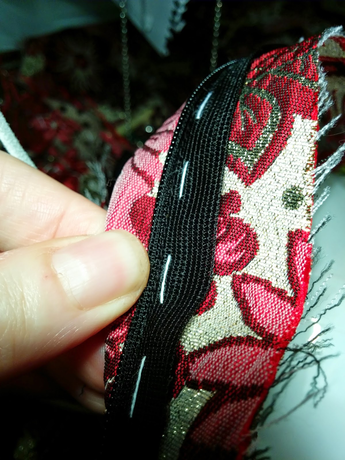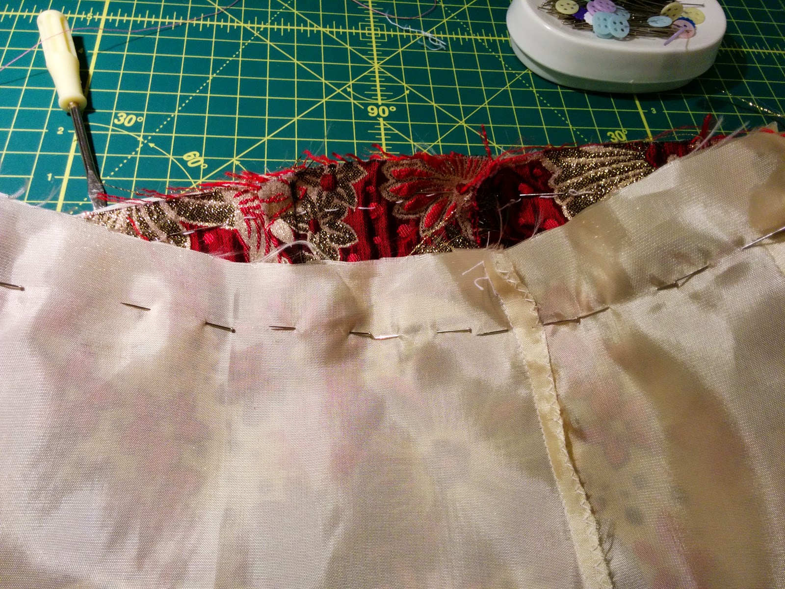 unimos con alfileres al borde de la cintura y pasamos un pespunte para que no haga bolsa y quede bien fijado.
