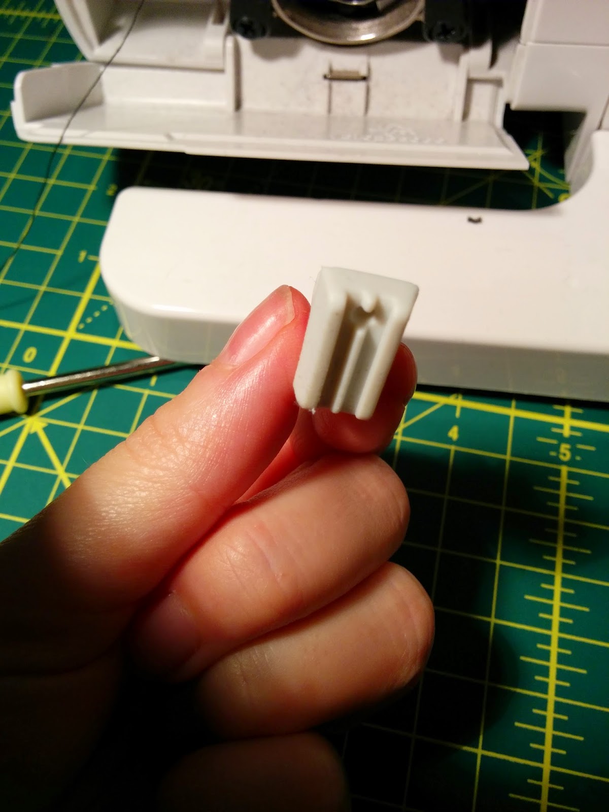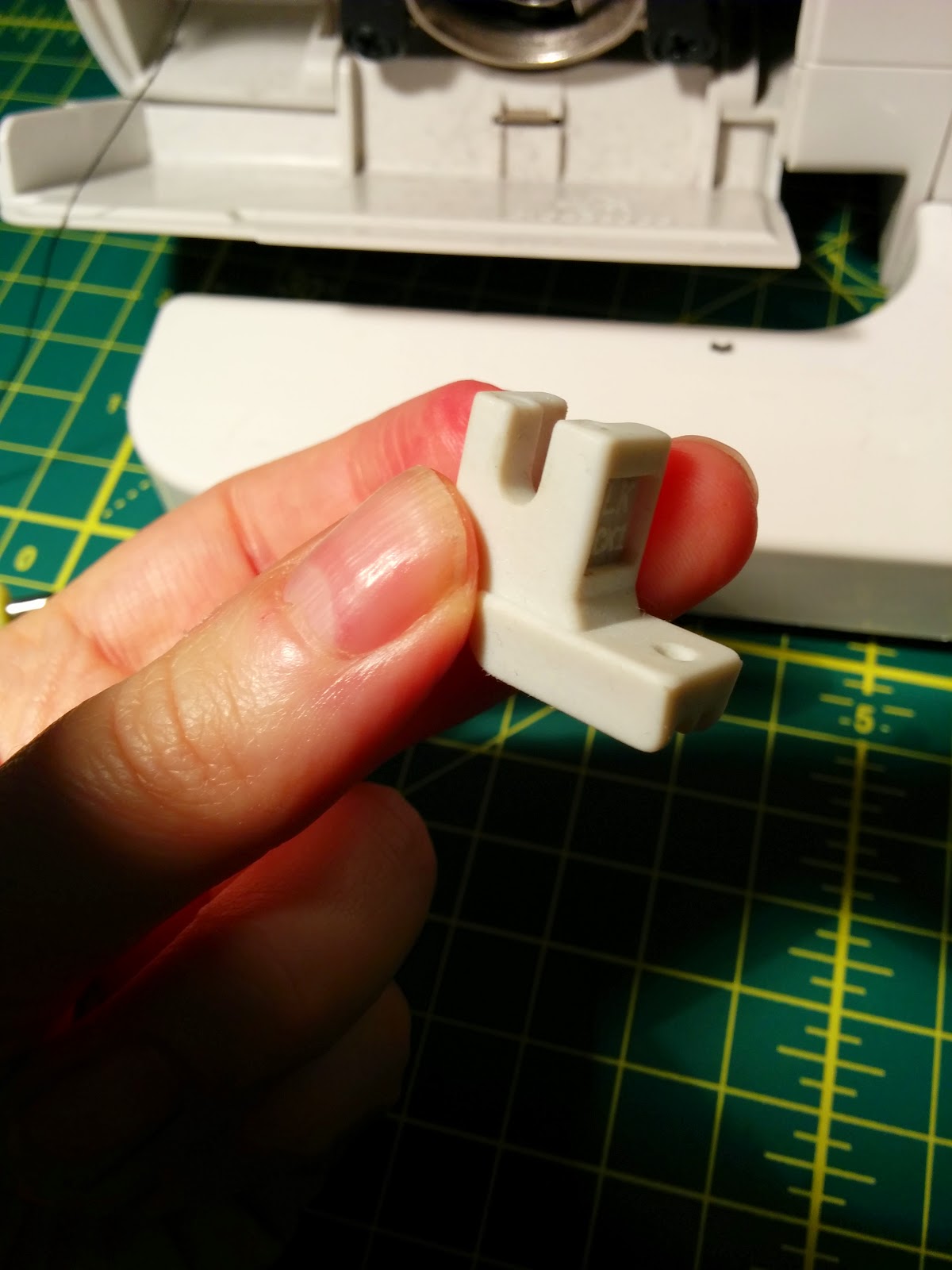 Una vez hilvanada la cremallera la pasamos a la maquina. Para este paso necesitmos una patilla especial para coser cremalleras invisibles, yo tengo esta patilla que compre hace años en la merceria