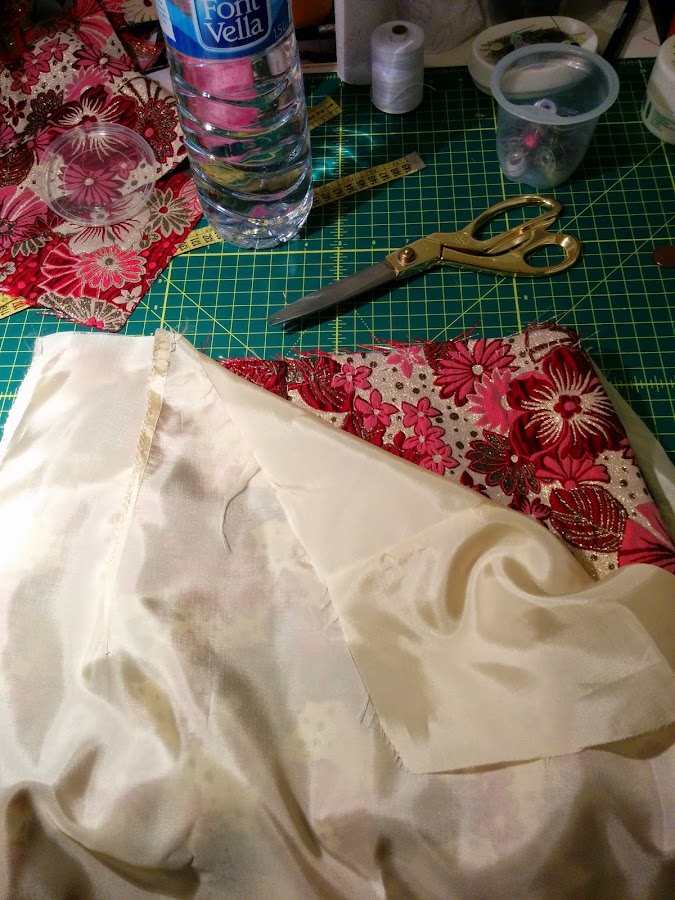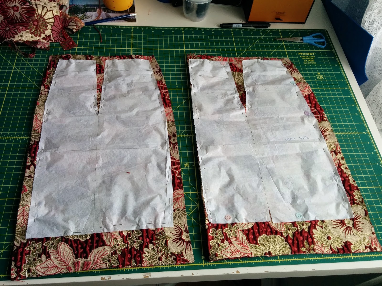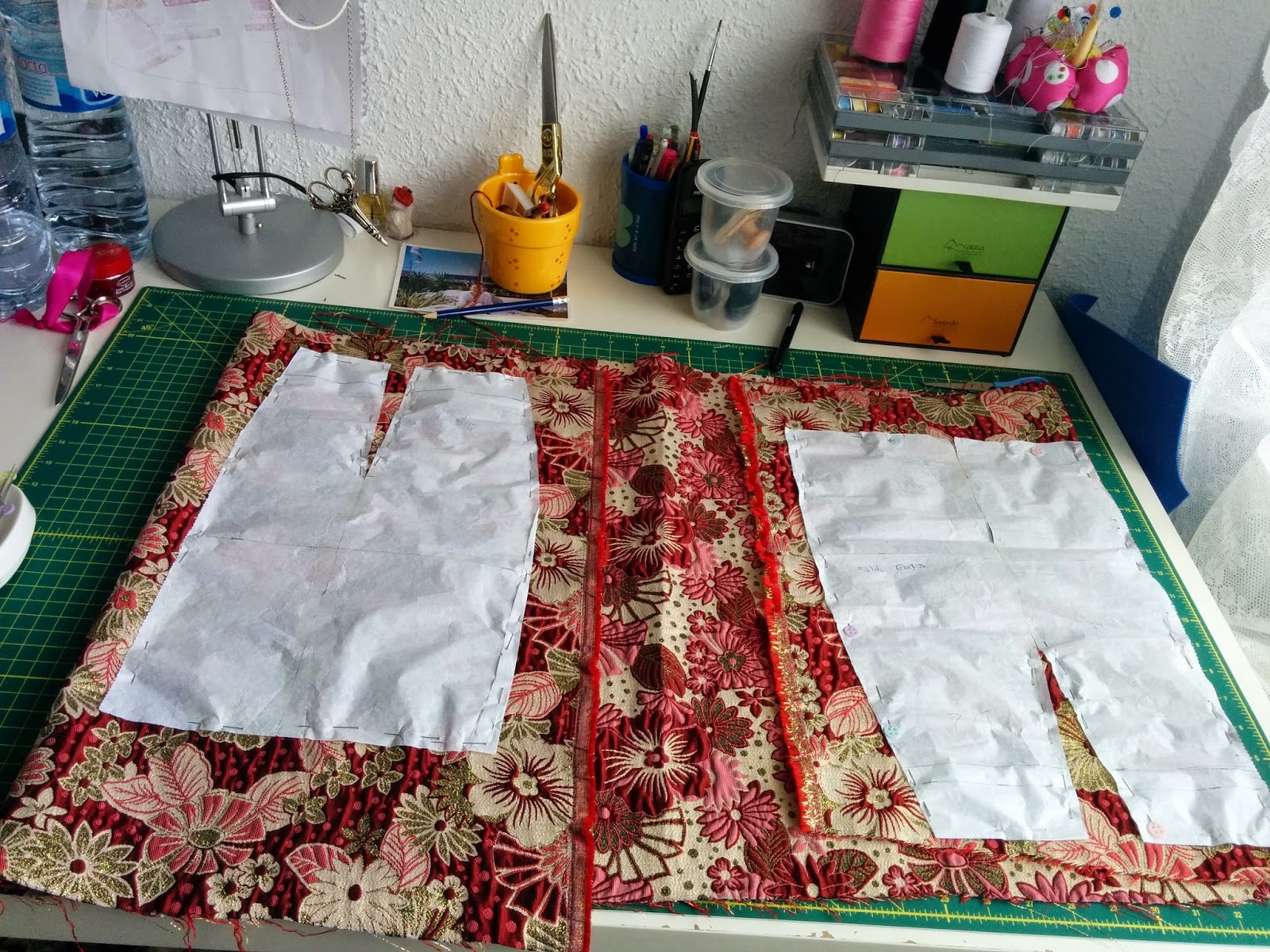 Ahora hacemos el mismo proceso con el forro, colocamos los patrones, pasamos hilos, hilvanamos, cosemos y sobrehilamos.