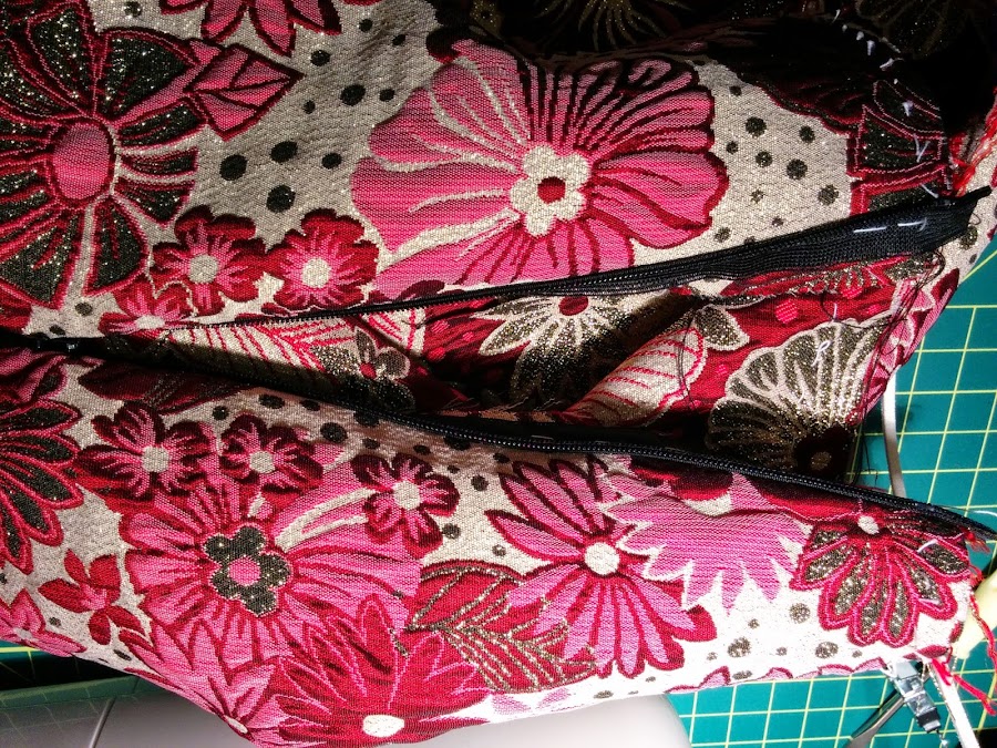 Una vez quitados los hilos, pasamos la maquina de coser a las pinzas, los costados (no a la abertura de la cremallera), y el trasero.