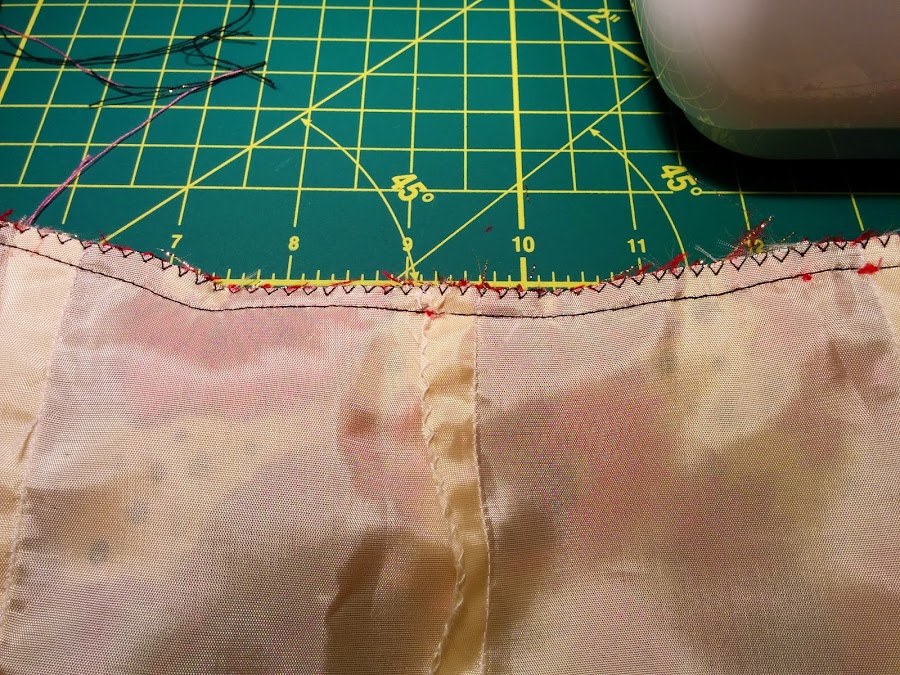 y sobrehilamos con la maquina los bordes de las costuras para que no se deshilachen