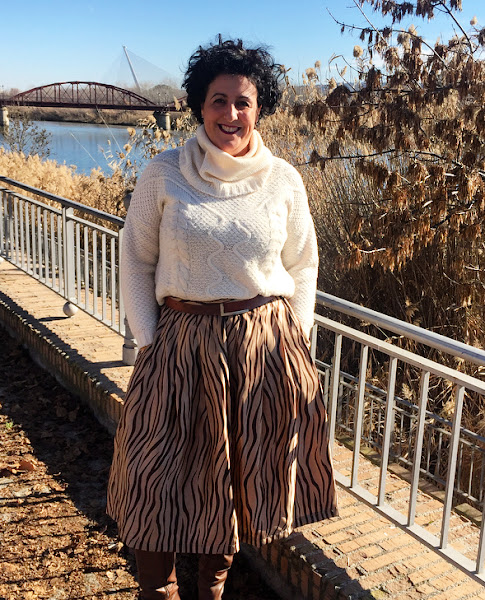 Yo tenia un pañuelo de estampado cebra, que me gustaba mucho, pero era enorme y en invierno no abrigaba, prefería cosas más abrigaditas y en verano era demasiado abrigado, total que estaba ahí muerto de risa y decidí convertirlo en una falda.