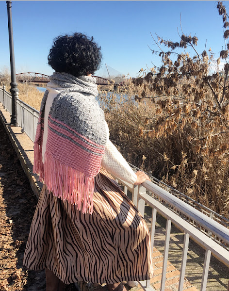 Ella con otro pañuelo ha creado otra prenda distinta a la mia. Si pasáis por su blog podéis ver de que se trata, las dos os hemos grabado el tutorial para que lo podáis hacer en casa.