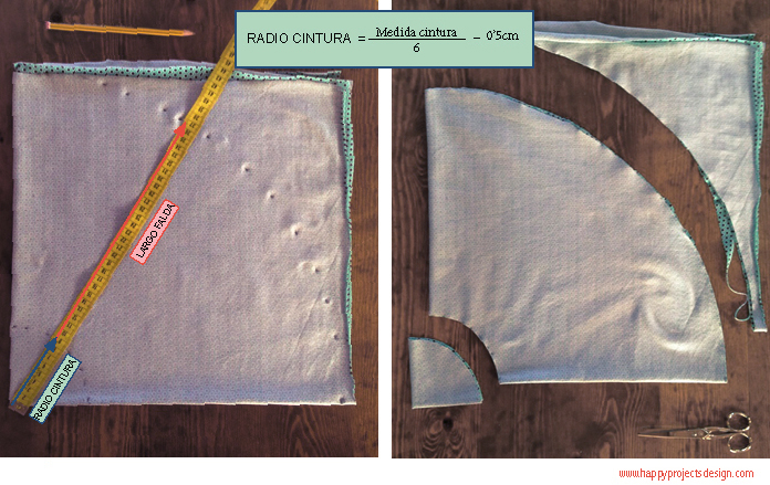3. Marca y corta el radio de la cintura y el largo de la falda