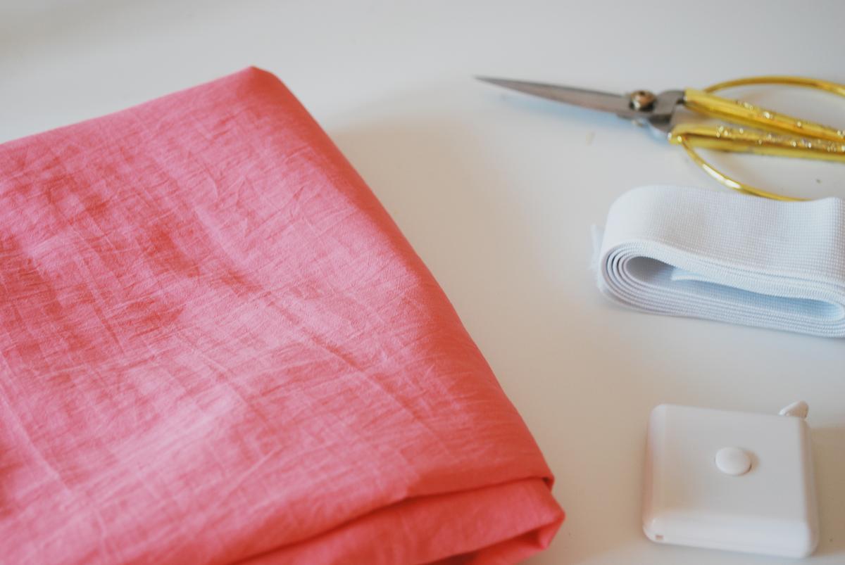 Solo necesitaréis dos rectángulos de tela. Yo he escogido esta tela en color coral que me parece muy veraniega y además es muy fresquita. Recordad que si usáis tela de algodón, primero tenéis que mojarla y dejarla secar por que puede encoger.